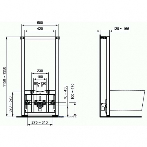 Габариты рамы для монтажа (ШхВхГ): 500х1350х165 мм.