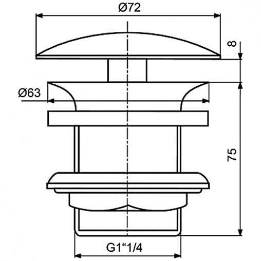 Специальный донный клапан 1 1/4" для раковин и чаш без отверстия перелива, хром