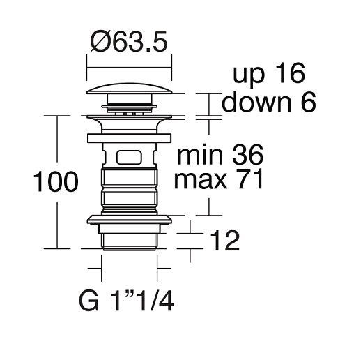 E1482XG, сливной набор для раковины, с переливом, push to open, чёрный матовый, Ideal Standard