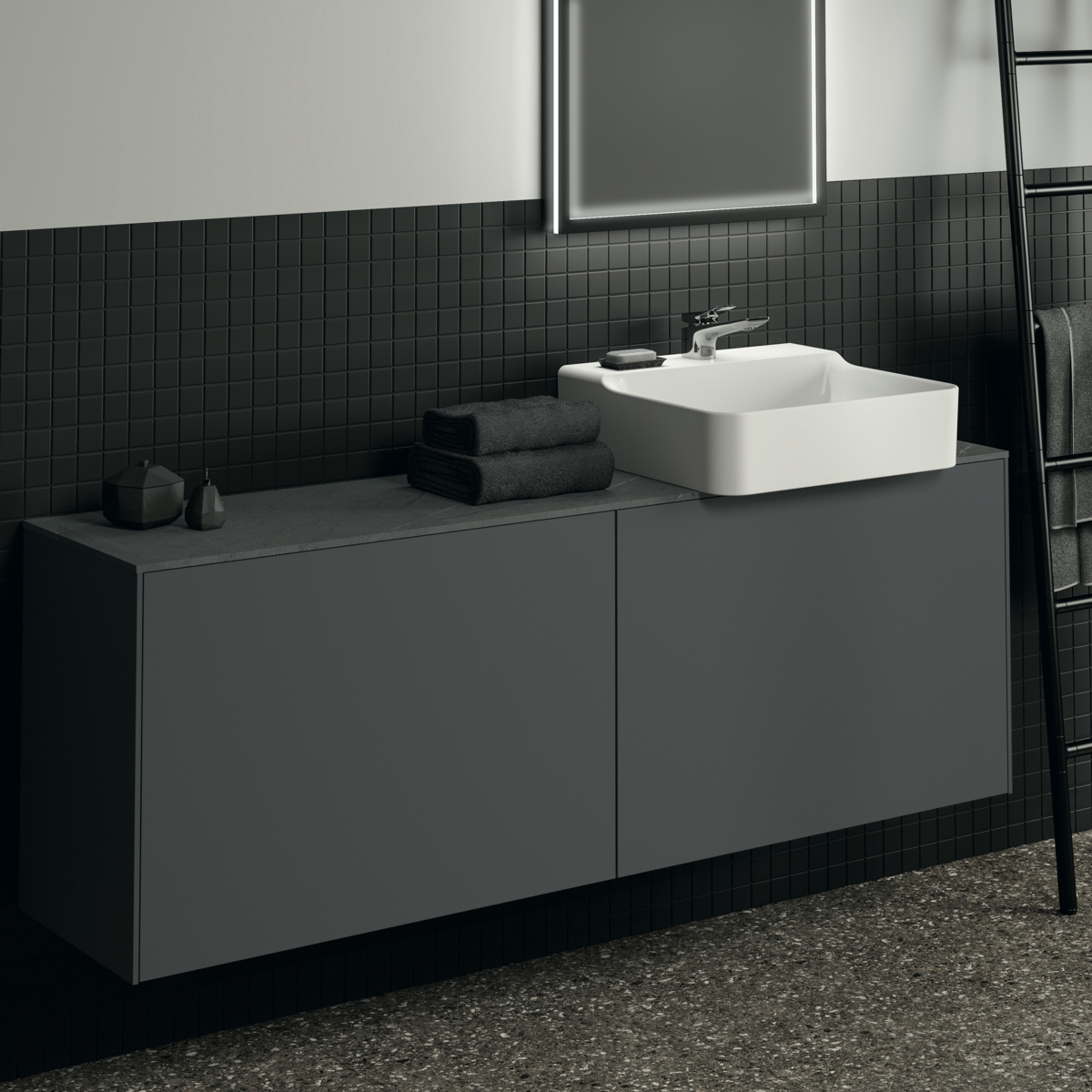 CONCA Столешница 160 см (литьевой мрамор), для монтажа с подстольем для умывальника, узкая проекция 37 см. Без выреза / вырез под заказ. Заказ столешницы из литьевого мрамора с вырезом должен сопровождаться заполнением формы (Bespoke order form), т.к. вырез готовится в зависимости от выбранного умывальника