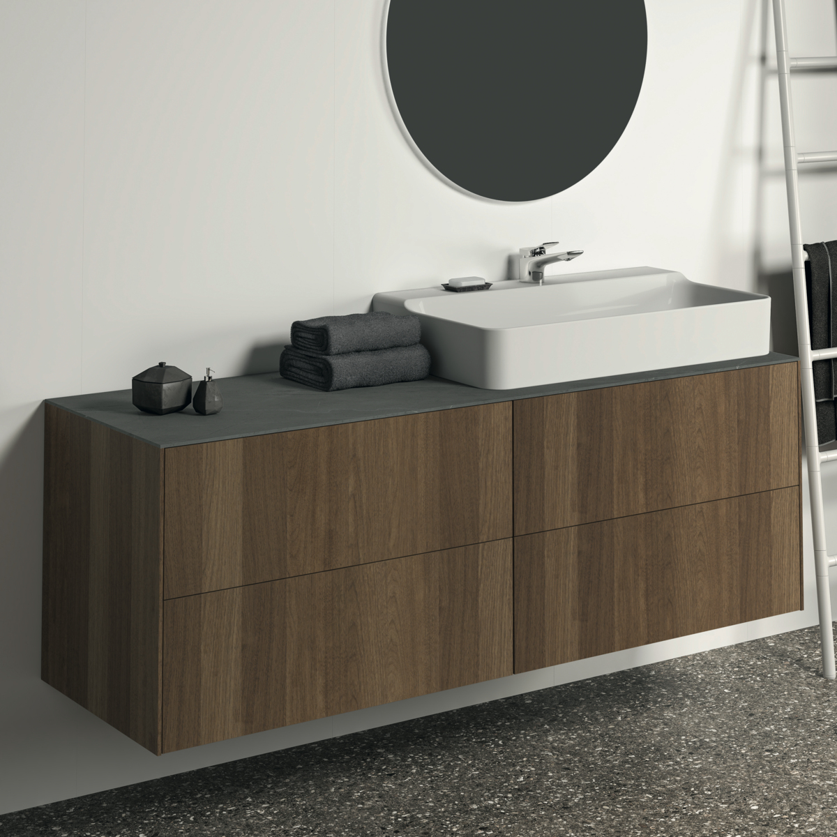CONCA Столешница 160 см (литьевой мрамор), для монтажа с подстольем для умывальника, проекция 50,5 см. Без выреза / вырез под заказ. Заказ столешницы из литьевого мрамора с вырезом должен сопровождаться заполнением формы (Bespoke order form), т.к. вырез готовится в зависимости от выбранного умывальника