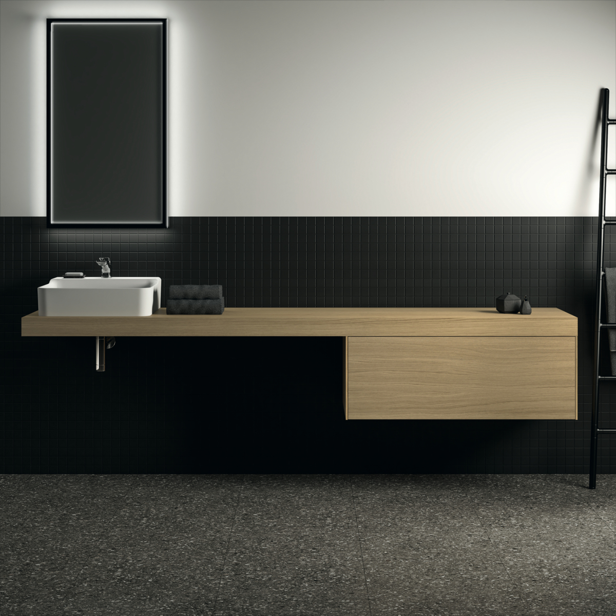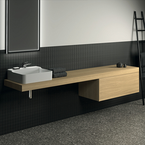 CONCA Консольная полка 240 см, проекция 50,5 см, без выреза (отверстие вырезается при помощи шаблона, входящего в комплект умывальника), с крепежом. Настенный монтаж при помощи кронштейнов (заказываются дополнительно)