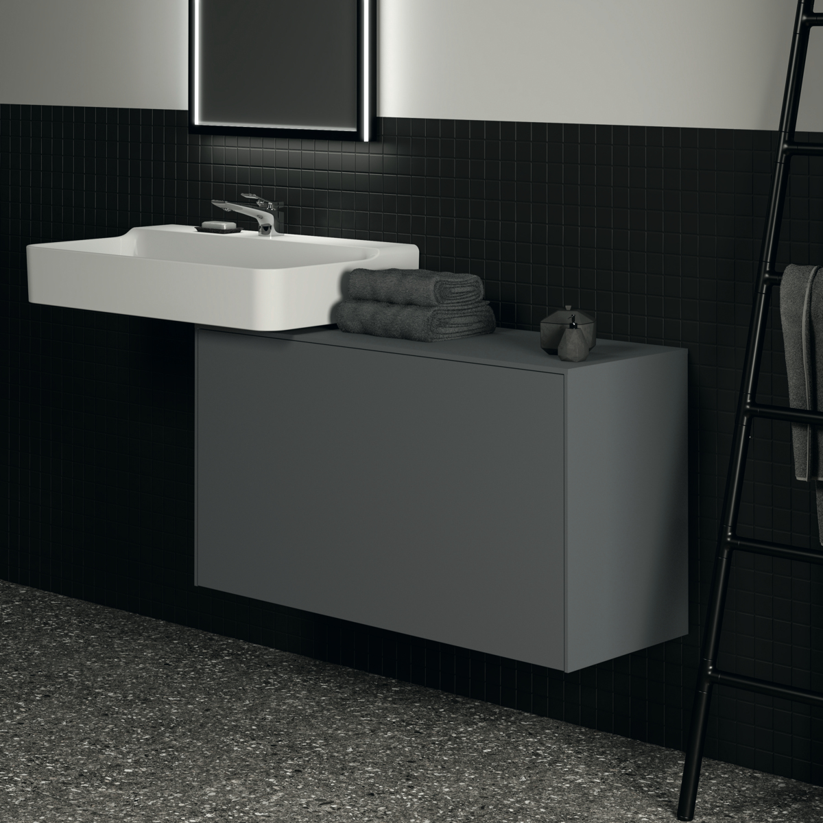 Тумба для ванной Conca 1 ящик, антрацит матовый, подвесной монтаж 100х37,3х55 см
