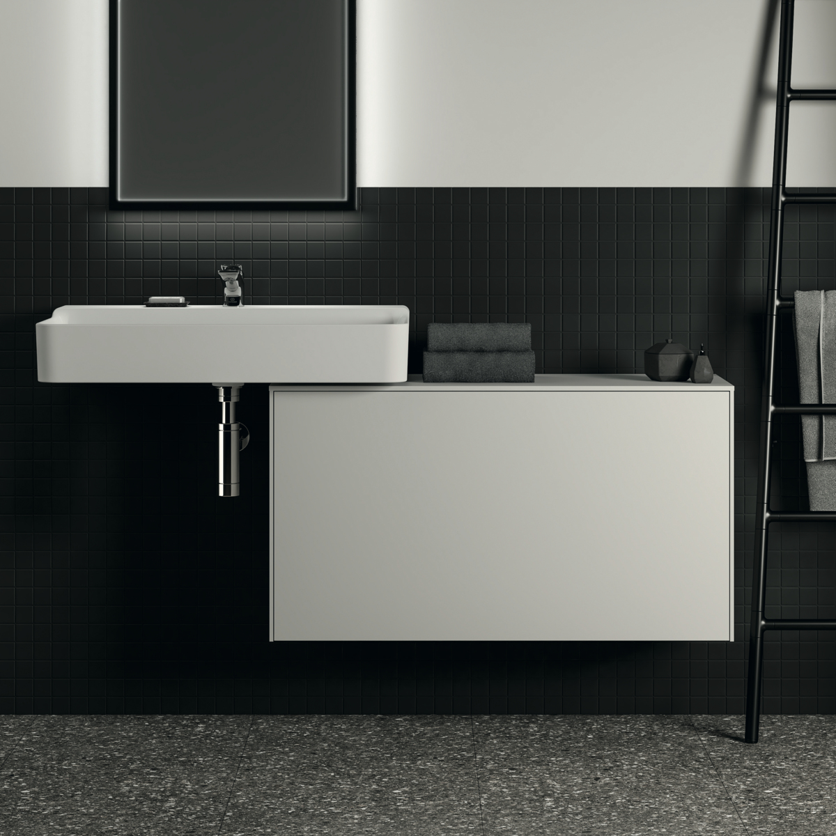 CONCA Тумба 100 см для раковины, узкая проекция 37 см, без выреза в столешнице. Комбинированная система для удобного использования (открытие "Push to open" + закрытие "Soft close"). Внутренняя отделка ящиков цвета антрацит. 1 внешний и 1 внутренний ящик. Для монтажа с раковинами Conca 40/50/60/80 см (с шлифованной нижней поверхностью) или Conca vessel 45/60 см или Extra 45/50/60/70/80 см (с шлифованной нижней поверхностью) или Extra vessel 50/60 см или Ipalyss vessel 40/55/60/65/80 см или Linda-X 50/60/75 см (с шлифованной нижней поверхностью) или Linda-X vessel 45/55 см