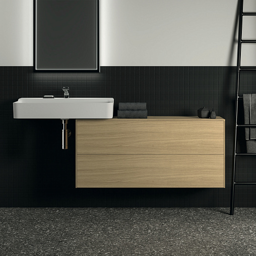 CONCA Тумба 120 см для раковины, узкая проекция 37 см, без выреза в столешнице. Комбинированная система для удобного использования (открытие "Push to open" + закрытие "Soft close"). Внутренняя отделка ящиков цвета антрацит. 2 внешних ящика. Для монтажа с раковинами Conca 40/50/60/80/100 см (с шлифованной нижней поверхностью) или Conca vessel 45/60 см или Extra 45/50/60/70/80/100 см (с шлифованной нижней поверхностью) или Extra vessel 50/60 см или Ipalyss vessel 40/55/60/65/80 см или Linda-X 50/60/75 см (с шлифованной нижней поверхностью) или Linda-X vessel 45/55 см