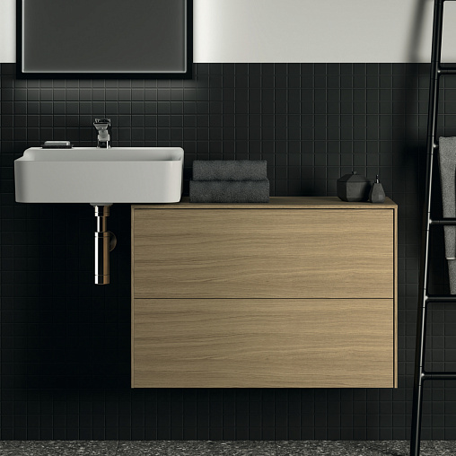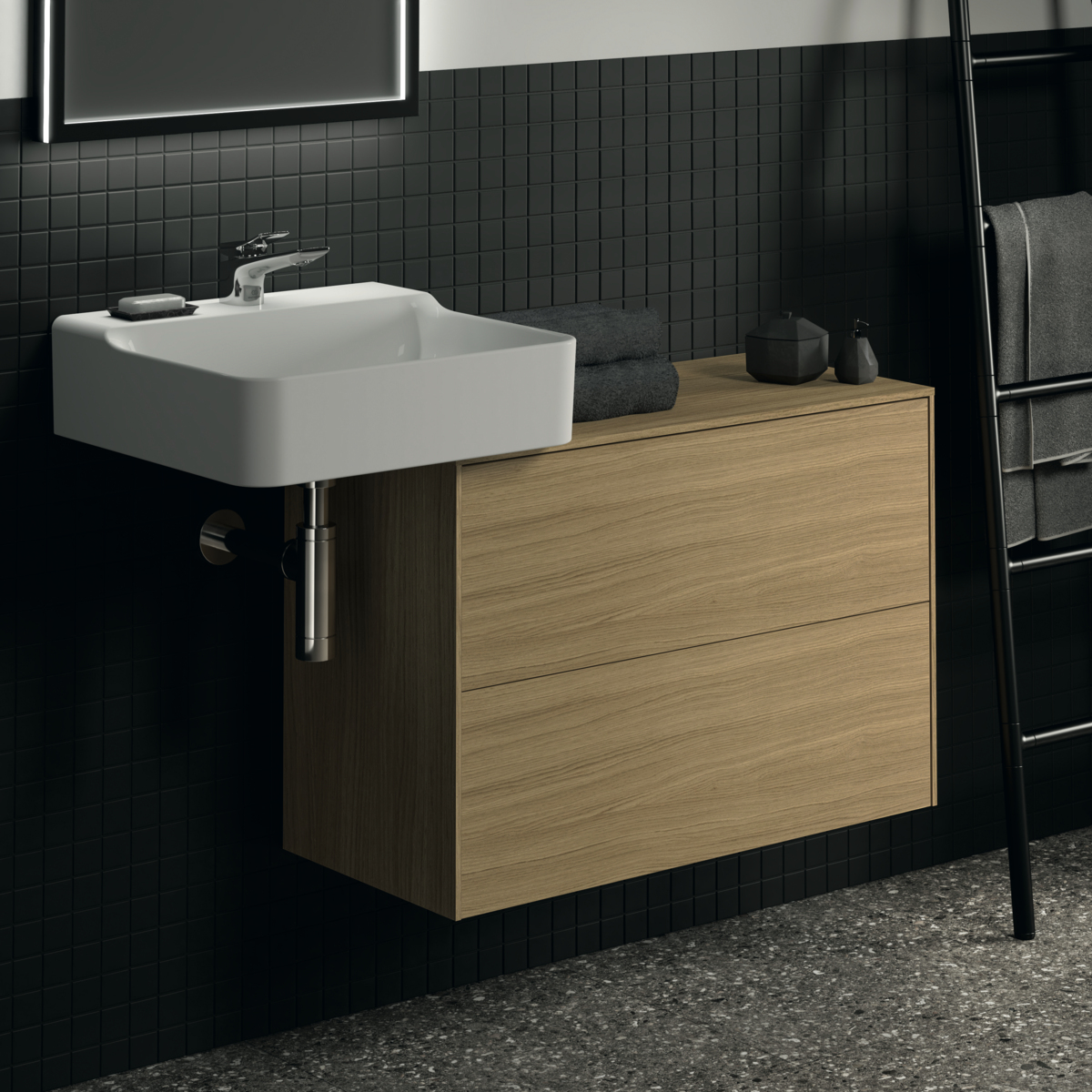 CONCA Тумба 80 см для раковины, узкая проекция 37 см, без выреза в столешнице. Комбинированная система для удобного использования (открытие "Push to open" + закрытие "Soft close"). Внутренняя отделка ящиков цвета антрацит. 2 внешних ящика. Внутренняя отделка ящиков цвета антрацит. 2 внешних ящика. Для монтажа с раковинами Conca 40/50/60 см (с шлифованной нижней поверхностью) или Conca vessel 45/60 см или Extra 45/50/60/70 см (с шлифованной нижней поверхностью) или Extra vessel 50/60 см или Ipalyss vessel 40/55/60/65/80 см или Linda-X 50/60/75 см (с шлифованной нижней поверхностью) или Linda-X vessel 45/55 см