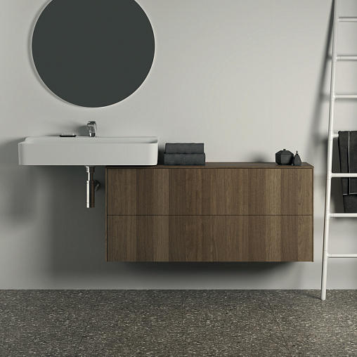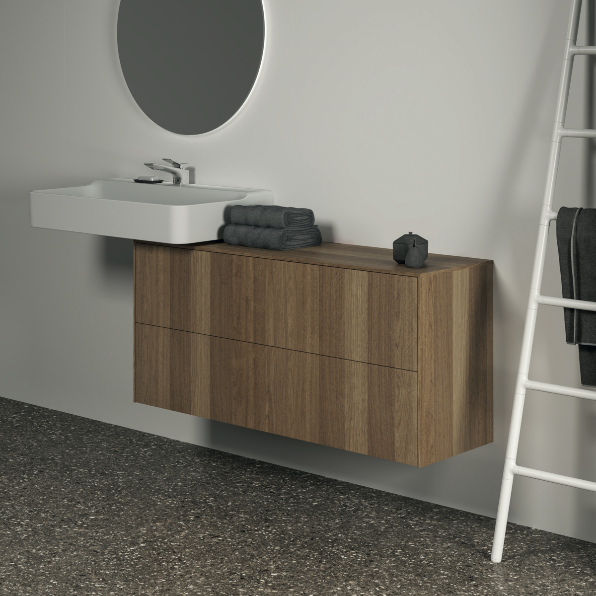 CONCA Тумба 120 см для раковины, узкая проекция 37 см, без выреза в столешнице. Комбинированная система для удобного использования (открытие "Push to open" + закрытие "Soft close"). Внутренняя отделка ящиков цвета антрацит. 2 внешних ящика. Для монтажа с раковинами Conca 40/50/60/80/100 см (с шлифованной нижней поверхностью) или Conca vessel 45/60 см или Extra 45/50/60/70/80/100 см (с шлифованной нижней поверхностью) или Extra vessel 50/60 см или Ipalyss vessel 40/55/60/65/80 см или Linda-X 50/60/75 см (с шлифованной нижней поверхностью) или Linda-X vessel 45/55 см