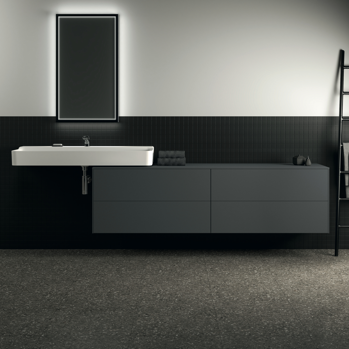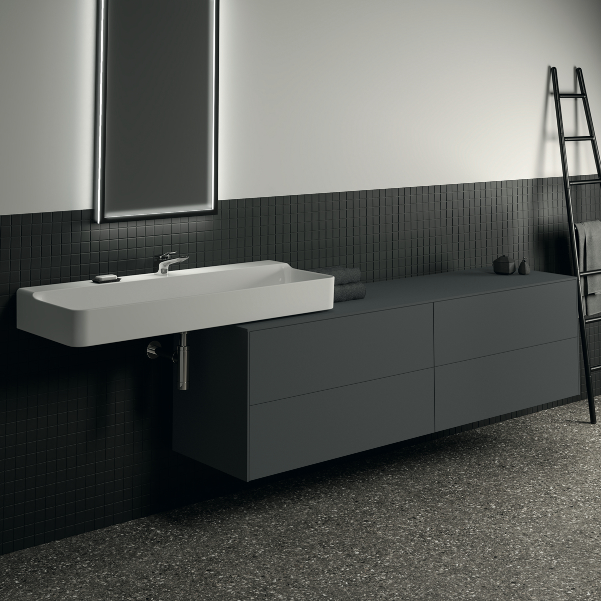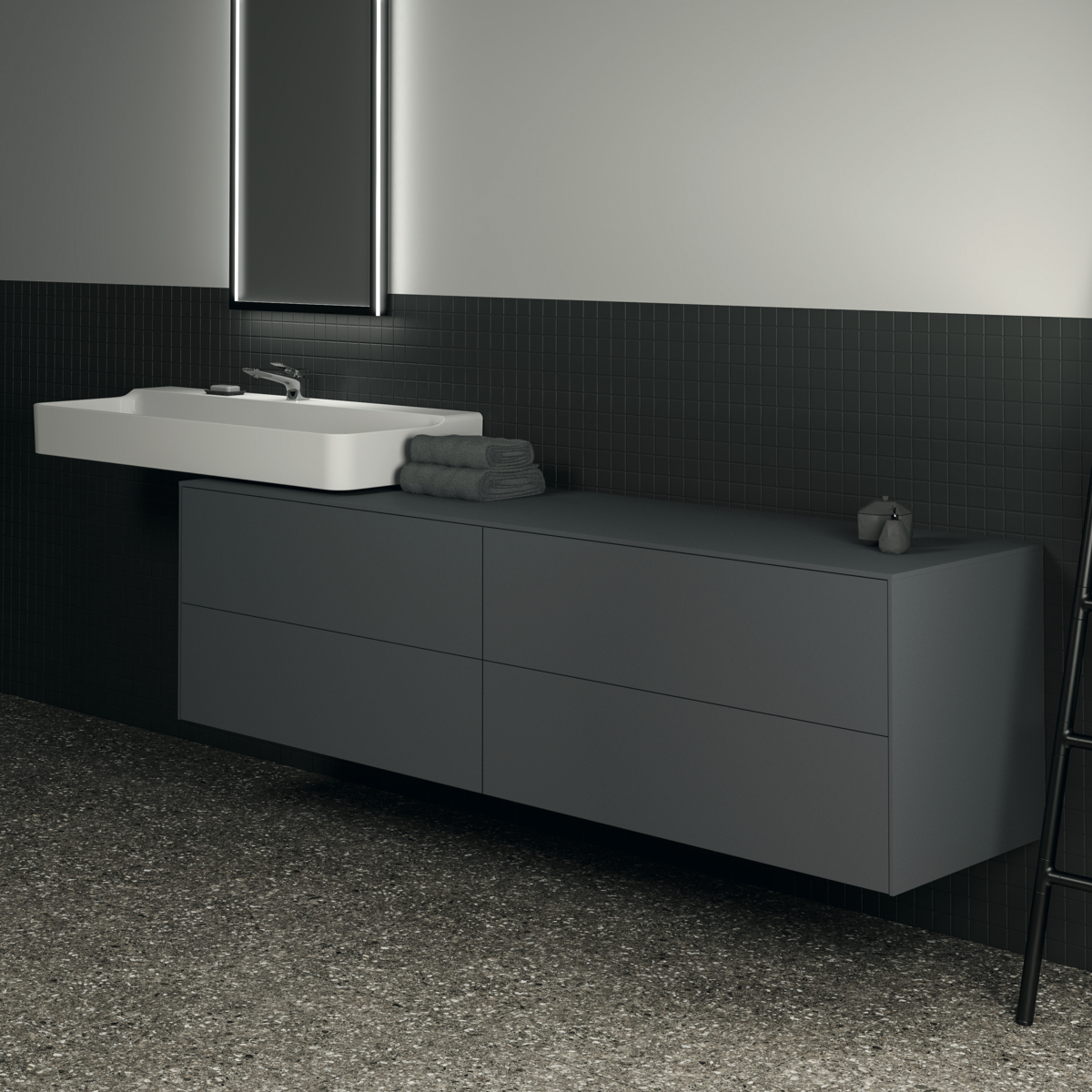 Тумба для ванной Conca 4 ящика, антрацит матовый, подвесной монтаж 198,7х50,5х55 см