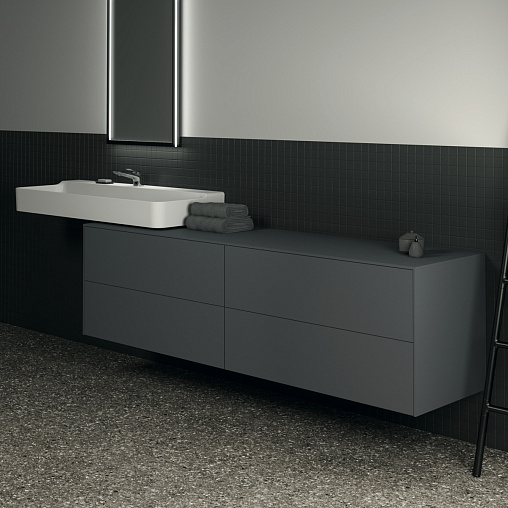 CONCA Тумба 200 см для раковины, без выреза в столешнице. Комбинированная система для удобного использования (открытие "Push to open" + закрытие "Soft close"). Внутренняя отделка ящиков цвета антрацит. 4 ящика. Для монтажа с раковинами Conca 40/50/60/80/100 см (с шлифованной нижней поверхностью) или Conca vessel 45/60 см или Extra 45/50/60/70/80/100 см (с шлифованной нижней поверхностью) или Extra vessel 50/60 см или Ipalyss vessel 40/55/60/65/80 см или Linda-X 50/60/75 см (с шлифованной нижней поверхностью) или Linda-X vessel 45/55 см