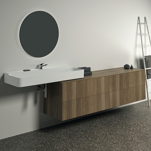 CONCA Тумба 200 см для раковины, без выреза в столешнице. Комбинированная система для удобного использования (открытие "Push to open" + закрытие "Soft close"). Внутренняя отделка ящиков цвета антрацит. 4 ящика. Для монтажа с раковинами Conca 40/50/60/80/100 см (с шлифованной нижней поверхностью) или Conca vessel 45/60 см или Extra 45/50/60/70/80/100 см (с шлифованной нижней поверхностью) или Extra vessel 50/60 см или Ipalyss vessel 40/55/60/65/80 см или Linda-X 50/60/75 см (с шлифованной нижней поверхностью) или Linda-X vessel 45/55 см
