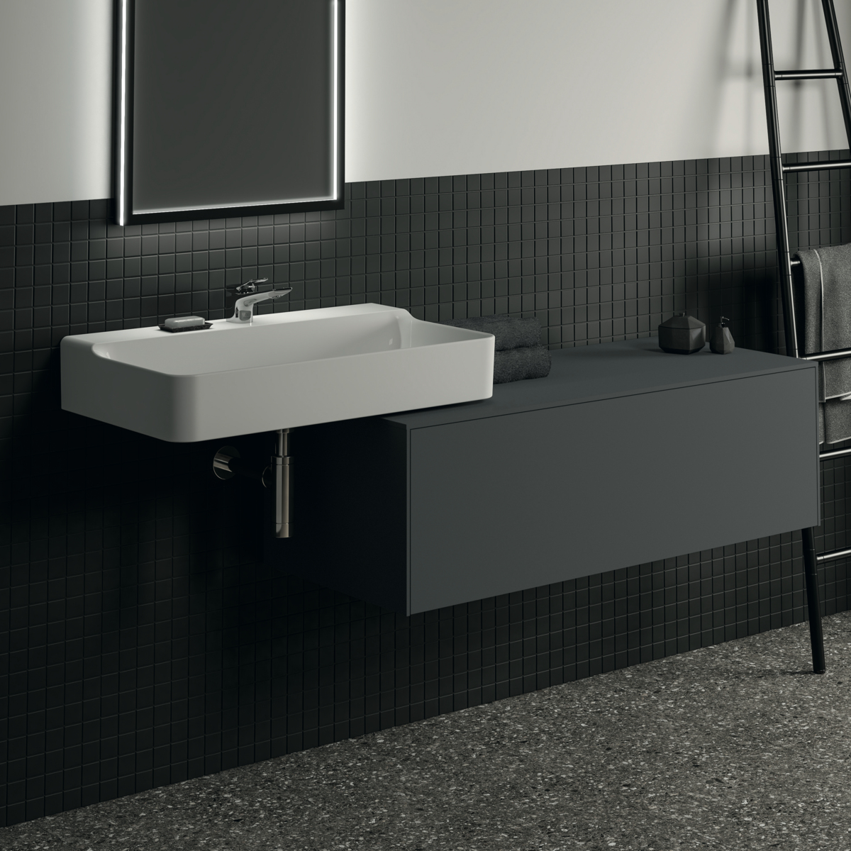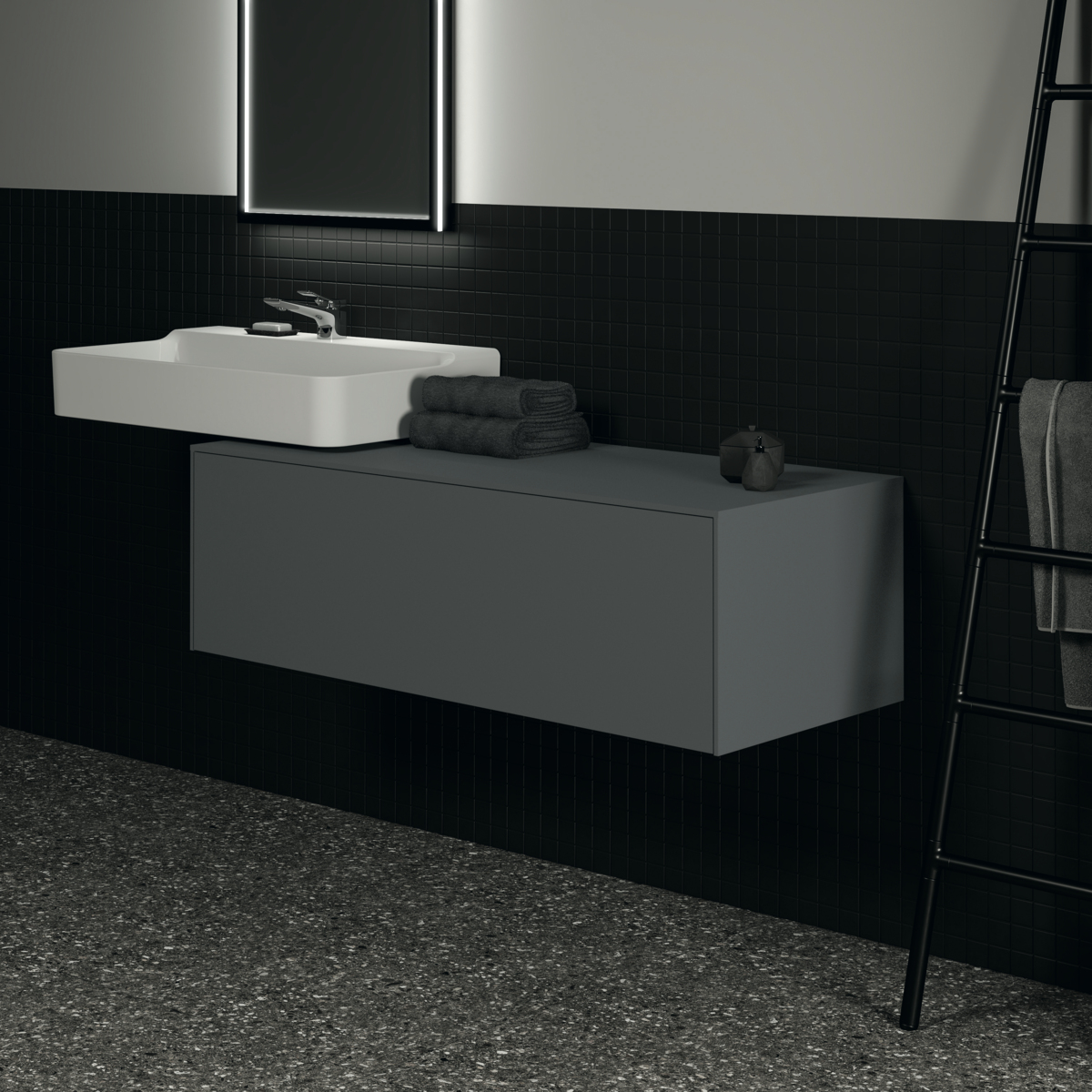 Тумба для ванной Conca антрацит матовый, подвесной монтаж 120х50,5х37 см