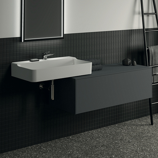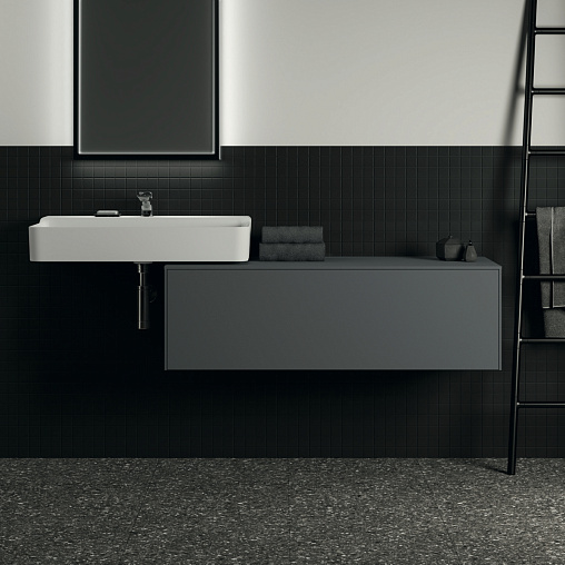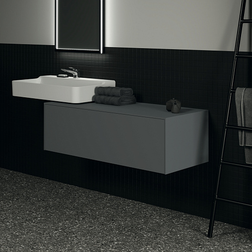 CONCA Тумба 120 см для раковины, без выреза в столешнице. Комбинированная система для удобного использования (открытие "Push to open" + закрытие "Soft close"). Внутренняя отделка ящиков цвета антрацит. 1 ящик. Для монтажа с раковинами Conca 40/50/60/80/100 см (с шлифованной нижней поверхностью) или Conca vessel 45/60 см или Extra 45/50/60/70/80/100 см (с шлифованной нижней поверхностью) или Extra vessel 50/60 см или Ipalyss vessel 40/55/60/65/80 см или Linda-X 50/60/75 см (с шлифованной нижней поверхностью) или Linda-X vessel 45/55 см