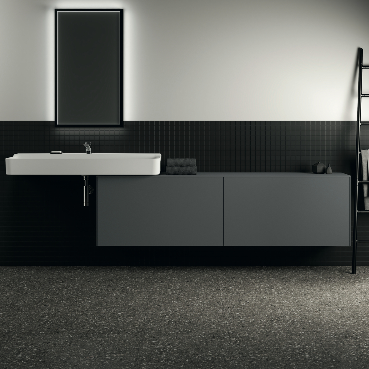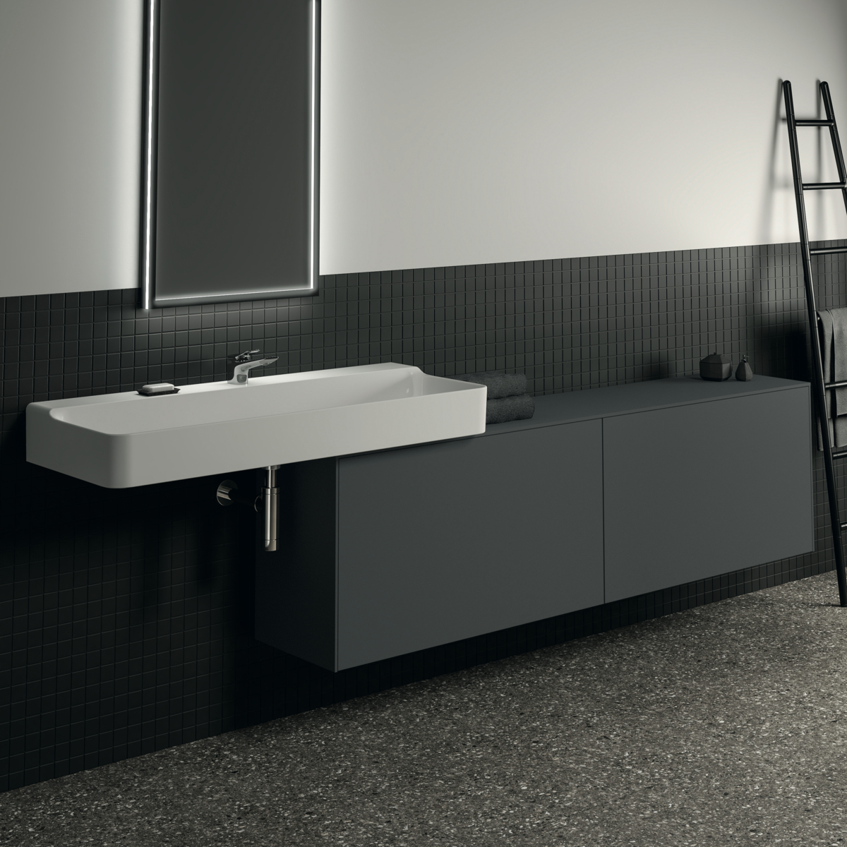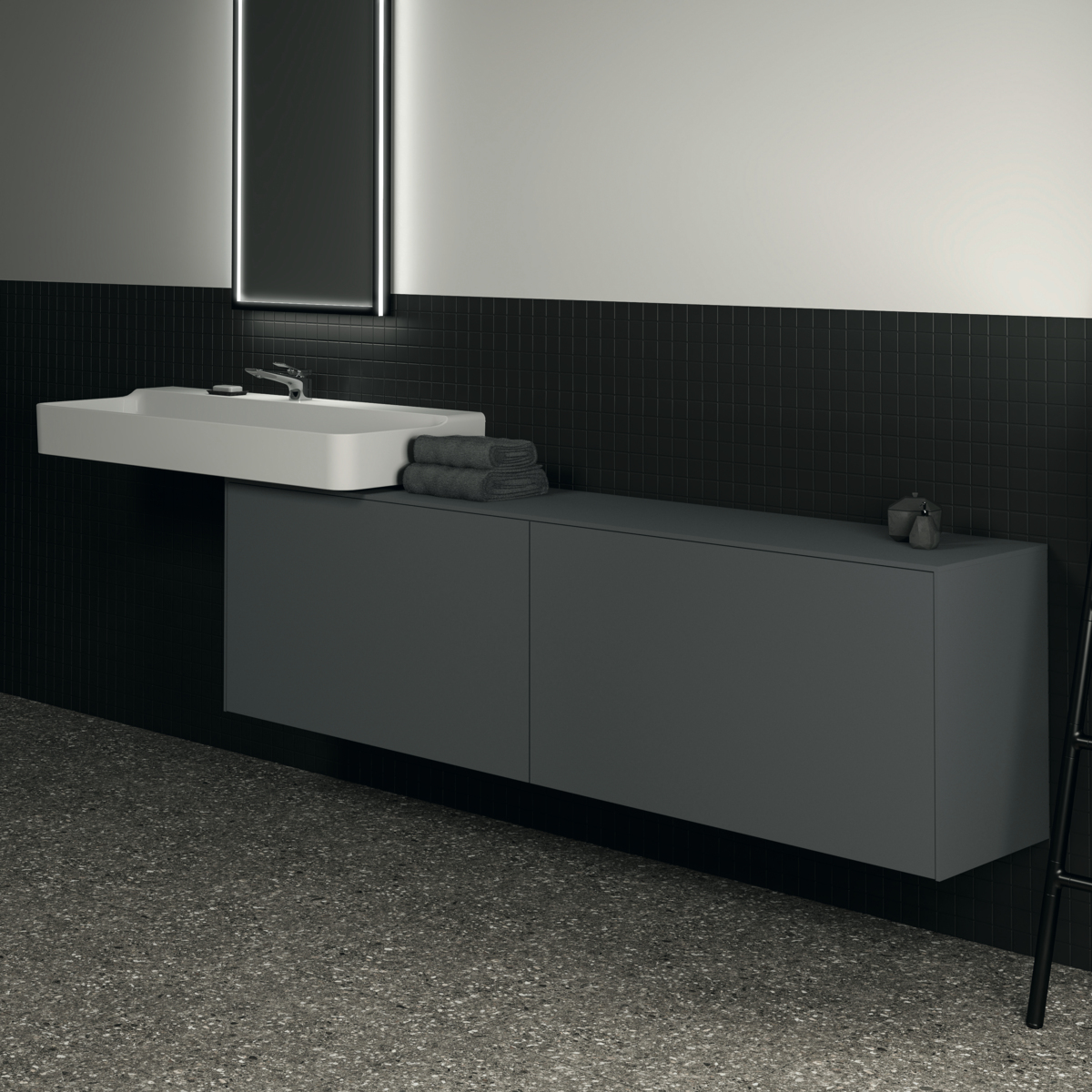 Тумба для ванной Conca антрацит матовый, подвесной монтаж 198,7х37,3х55 см