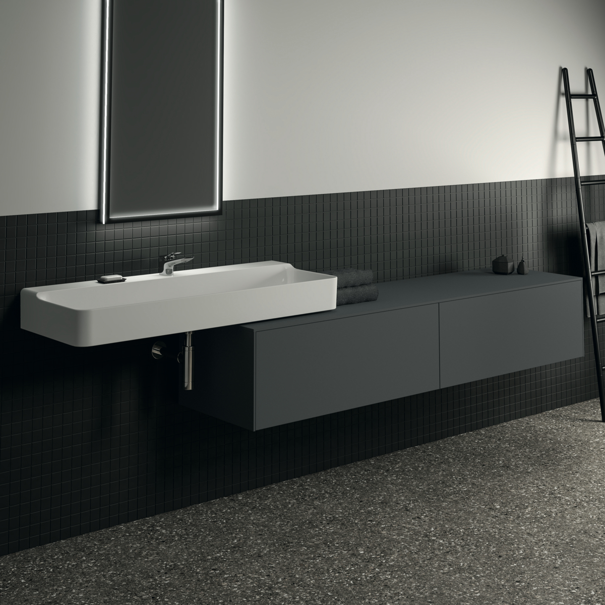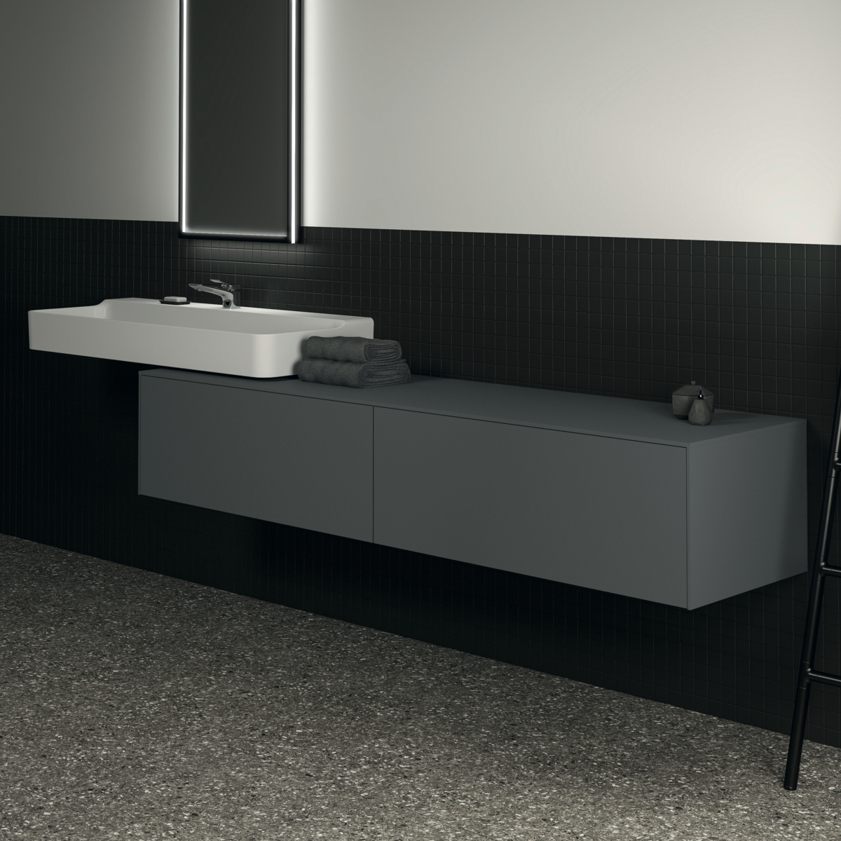 CONCA Тумба 200 см для раковины, без выреза в столешнице. Комбинированная система для удобного использования (открытие "Push to open" + закрытие "Soft close"). Внутренняя отделка ящиков цвета антрацит. 2 ящика. Для монтажа с раковинами Conca 40/50/60/80/100 см (с шлифованной нижней поверхностью) или Conca vessel 45/60 см или Extra 45/50/60/70/80/100 см (с шлифованной нижней поверхностью) или Extra vessel 50/60 см или Ipalyss vessel 40/55/60/65/80 см или Linda-X 50/60/75 см (с шлифованной нижней поверхностью) или Linda-X vessel 45/55 см