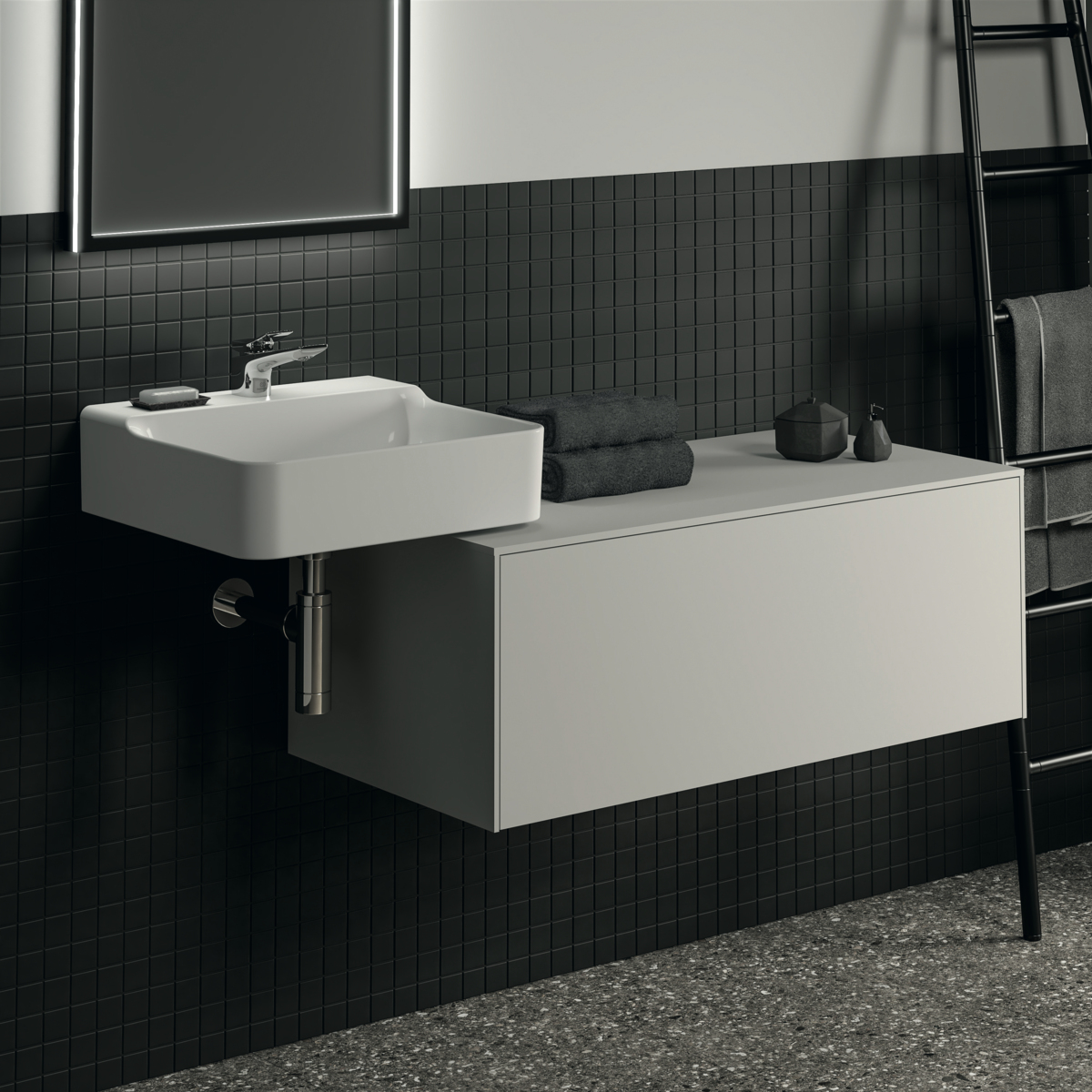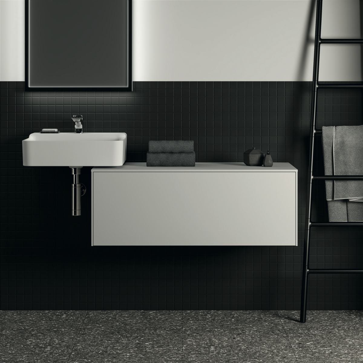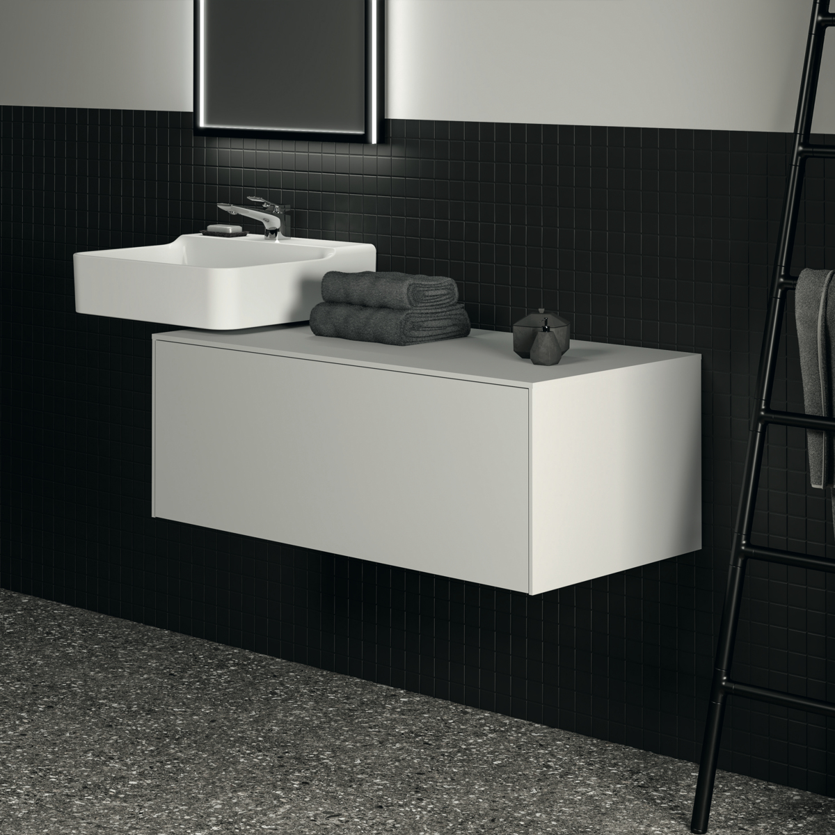 CONCA Тумба 100 см для раковины, без выреза в столешнице. Комбинированная система для удобного использования (открытие "Push to open" + закрытие "Soft close"). Внутренняя отделка ящиков цвета антрацит. 1 ящик. Для монтажа с раковинами Conca 40/50/60/80 см (с шлифованной нижней поверхностью) или Conca vessel 45/60 см или Extra 45/50/60/70/80 см (с шлифованной нижней поверхностью) или Extra vessel 50/60 см или Ipalyss vessel 40/55/60/65/80 см или Linda-X 50/60/75 см (с шлифованной нижней поверхностью) или Linda-X vessel 45/55 см