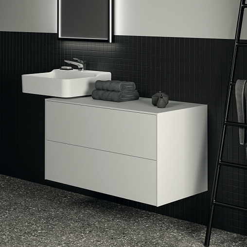 CONCA Тумба 100 см для раковины, без выреза в столешнице. Комбинированная система для удобного использования (открытие "Push to open" + закрытие "Soft close"). Внутренняя отделка ящиков цвета антрацит. 2 ящика. Для монтажа с раковинами Conca 40/50/60/80 см (с шлифованной нижней поверхностью) или Conca vessel 45/60 см или Extra 45/50/60/70/80 см (с шлифованной нижней поверхностью) или Extra vessel 50/60 см или Ipalyss vessel 40/55/60/65/80 см или Linda-X 50/60/75 см (с шлифованной нижней поверхностью) или Linda-X vessel 45/55 см