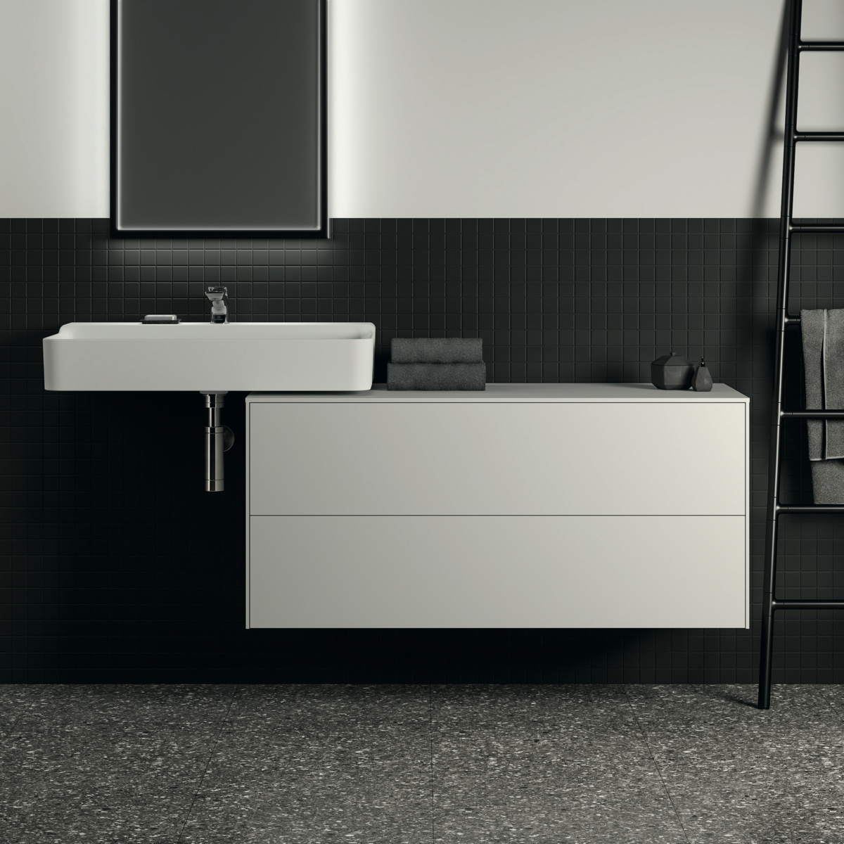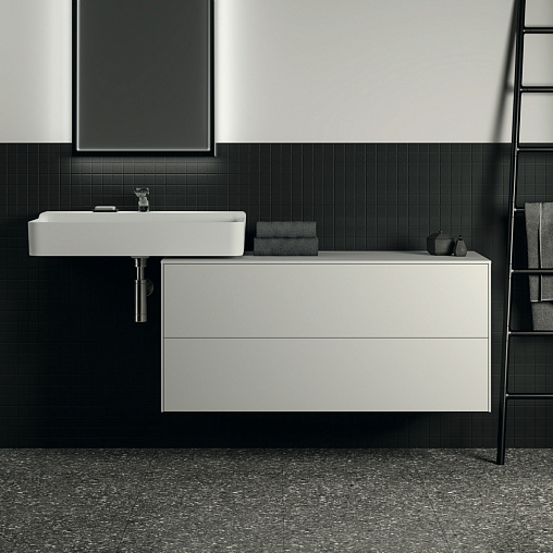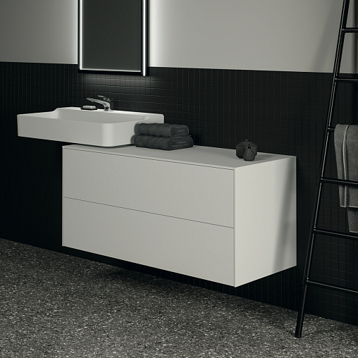 CONCA Тумба 120 см для раковины, без выреза в столешнице. Комбинированная система для удобного использования (открытие "Push to open" + закрытие "Soft close"). Внутренняя отделка ящиков цвета антрацит. 2 ящика. Для монтажа с раковинами Conca 40/50/60/80/100 см (с шлифованной нижней поверхностью) или Conca vessel 45/60 см или Extra 45/50/60/70/80/100 см (с шлифованной нижней поверхностью) или Extra vessel 50/60 см или Ipalyss vessel 40/55/60/65/80 см или Linda-X 50/60/75 см (с шлифованной нижней поверхностью) или Linda-X vessel 45/55 см