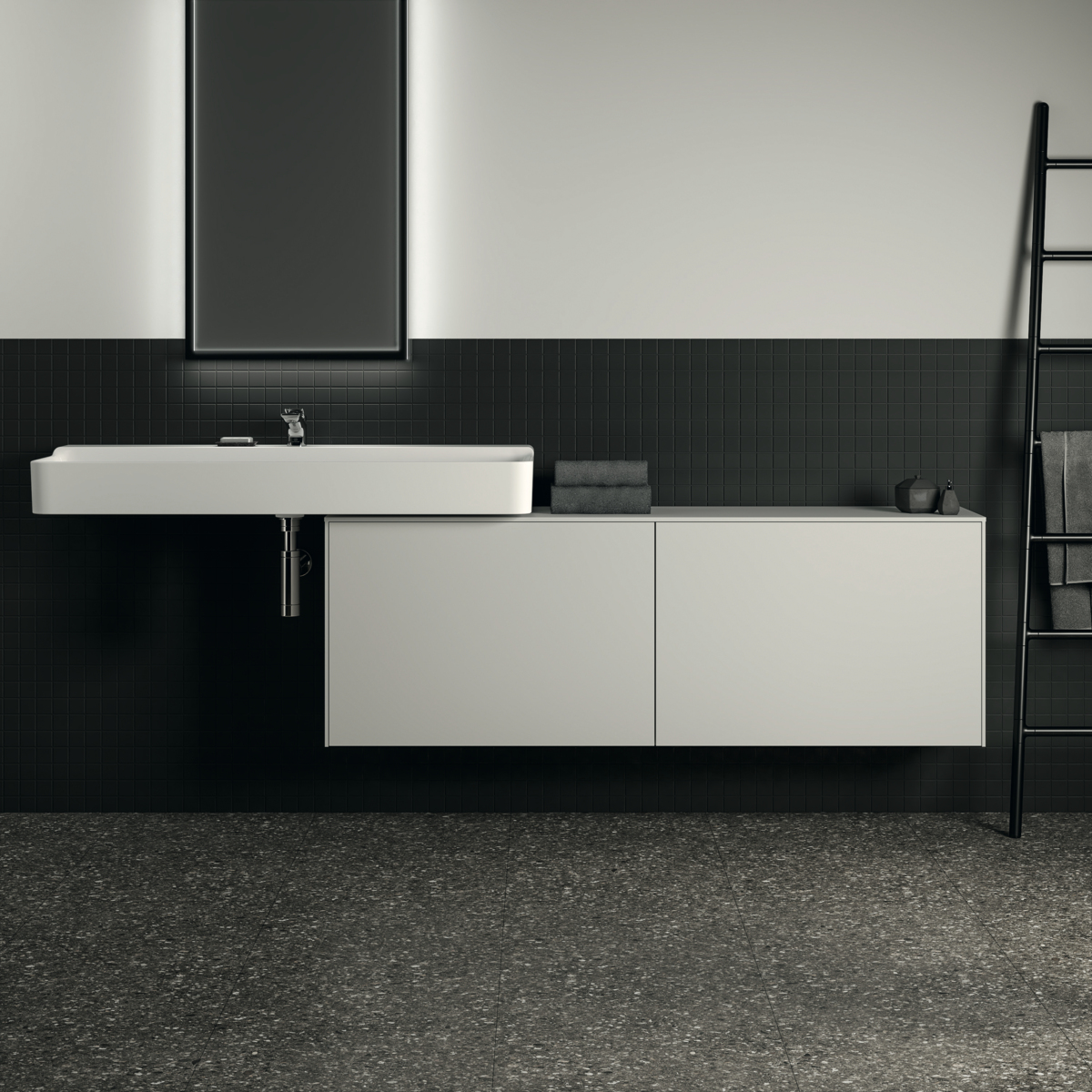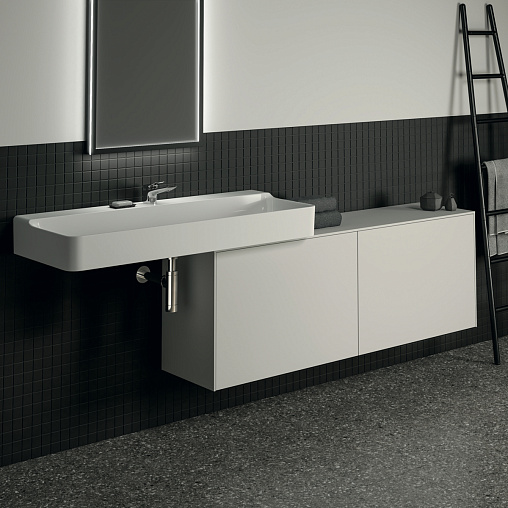 CONCA Тумба 160 см для раковины, узкая проекция 37 см, без выреза в столешнице. Комбинированная система для удобного использования (открытие "Push to open" + закрытие "Soft close"). Внутренняя отделка ящиков цвета антрацит. 2 внешних и 2 внутренних ящика. Для монтажа с раковинами Conca 40/50/60/80 см (с шлифованной нижней поверхностью) или Conca vessel 45/60 см или Extra 45/50/60/70/80 см (с шлифованной нижней поверхностью) или Extra vessel 50/60 см или Ipalyss vessel 40/55/60/65/80 см или Linda-X 50/60/75 см (с шлифованной нижней поверхностью) или Linda-X vessel 45/55 см