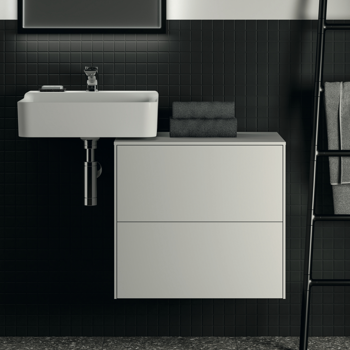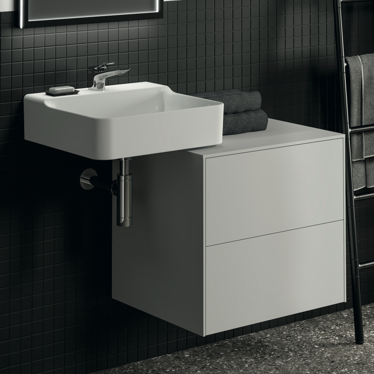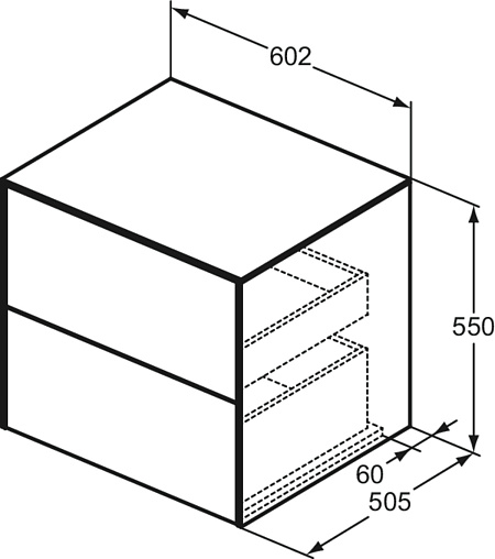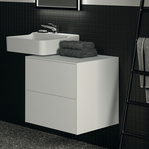 CONCA Тумба 60 см для раковины, без выреза в столешнице. Комбинированная система для удобного использования (открытие "Push to open" + закрытие "Soft close"). Внутренняя отделка ящиков цвета антрацит. 2 ящика. Для монтажа с раковинами Conca 40/50 см (с шлифованной нижней поверхностью) или Conca vessel 45 см или Extra 45/50 см (с шлифованной нижней поверхностью) или Extra vessel 50 см или Ipalyss vessel 40/55/60 см или Linda-X 50/60 см (с шлифованной нижней поверхностью) или Linda-X vessel 45/55 см