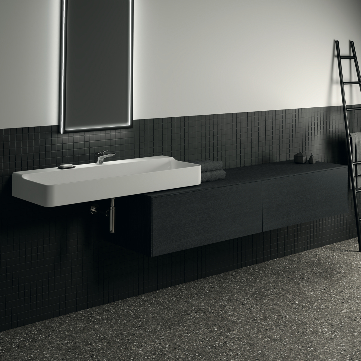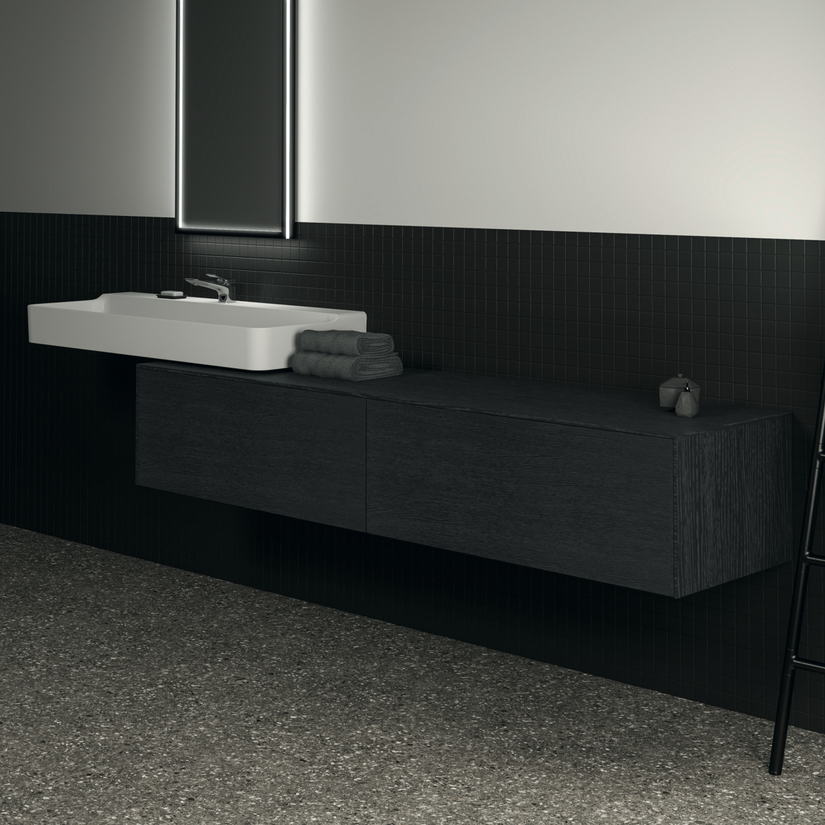 CONCA Тумба 200 см для раковины, без выреза в столешнице. Комбинированная система для удобного использования (открытие "Push to open" + закрытие "Soft close"). Внутренняя отделка ящиков цвета антрацит. 2 ящика. Для монтажа с раковинами Conca 40/50/60/80/100 см (с шлифованной нижней поверхностью) или Conca vessel 45/60 см или Extra 45/50/60/70/80/100 см (с шлифованной нижней поверхностью) или Extra vessel 50/60 см или Ipalyss vessel 40/55/60/65/80 см или Linda-X 50/60/75 см (с шлифованной нижней поверхностью) или Linda-X vessel 45/55 см