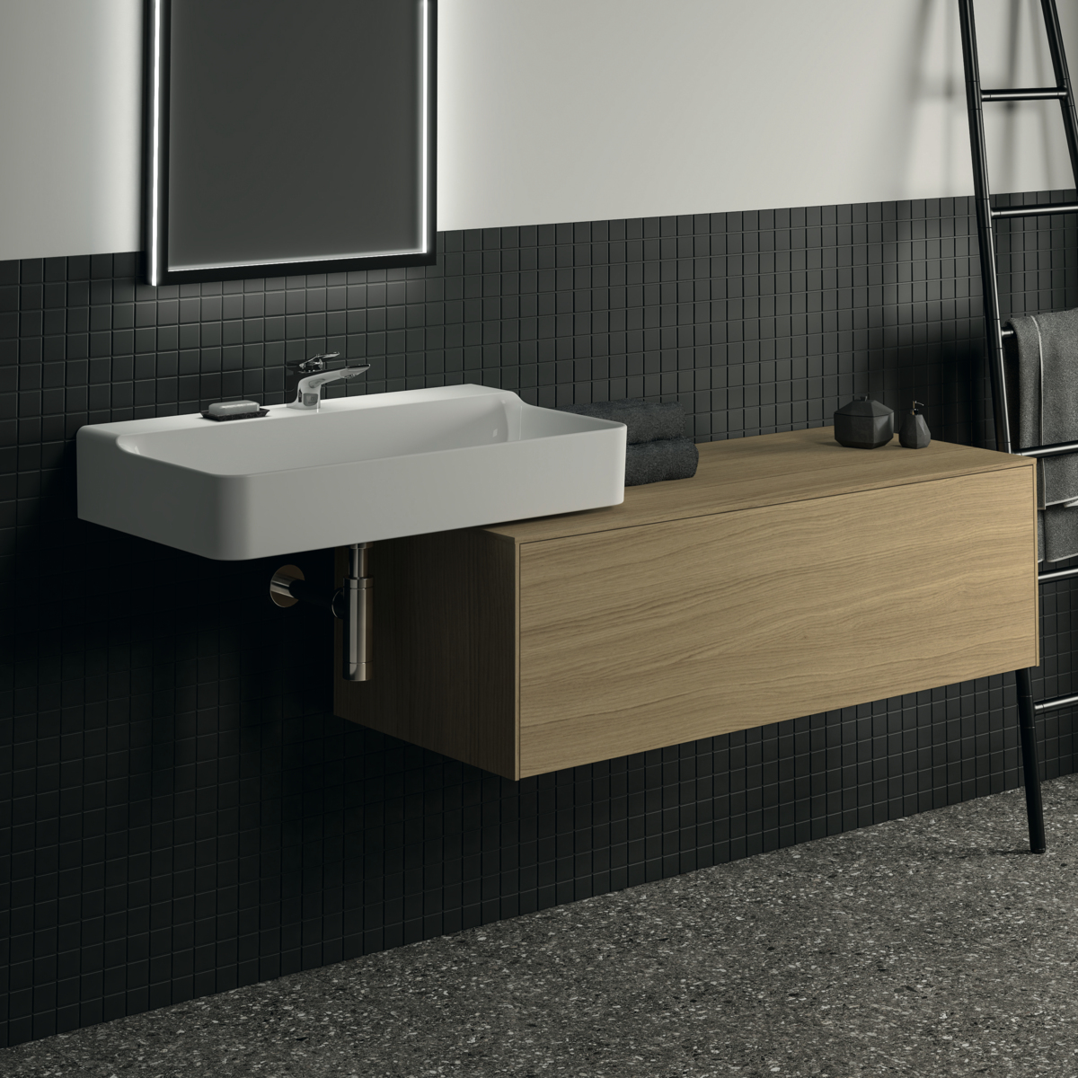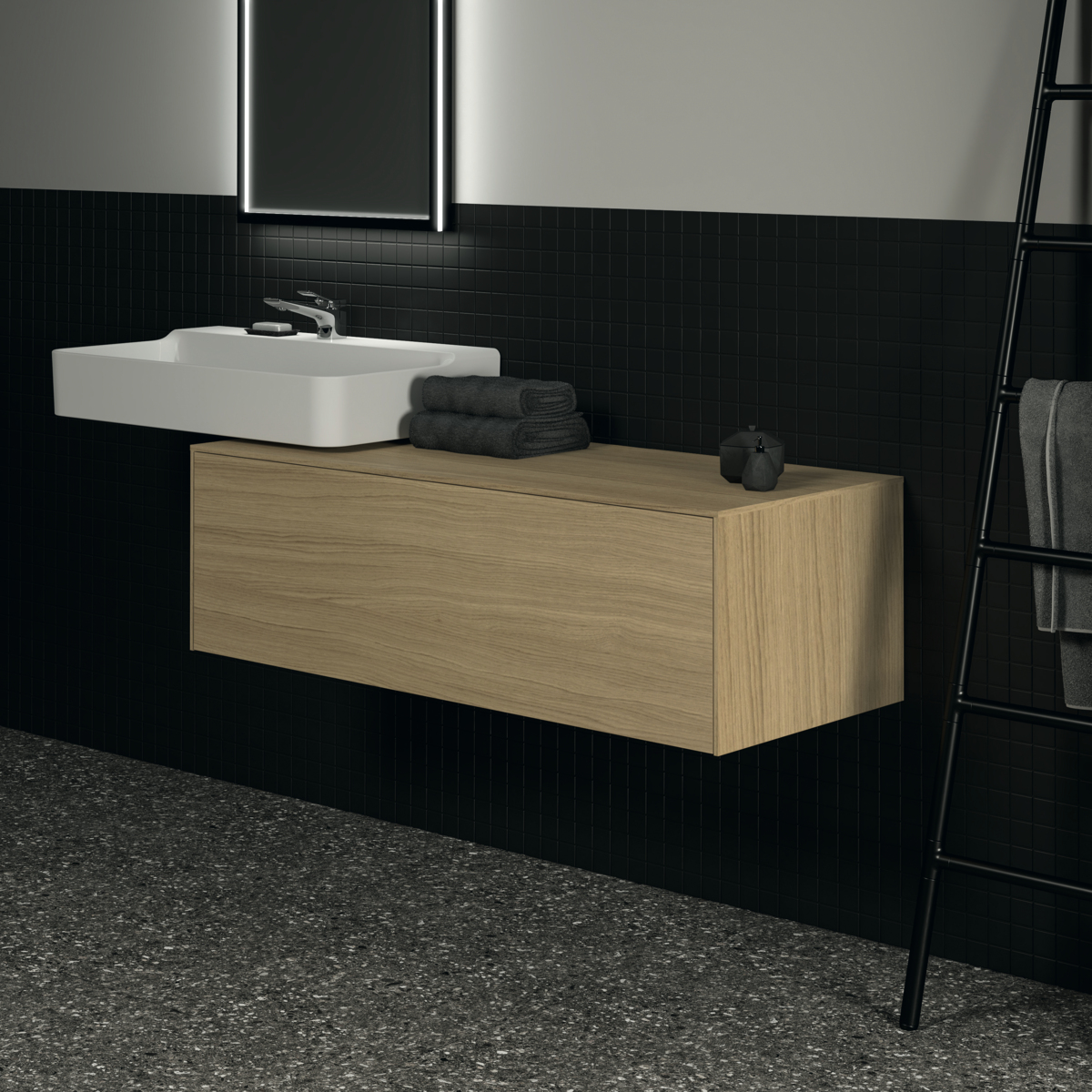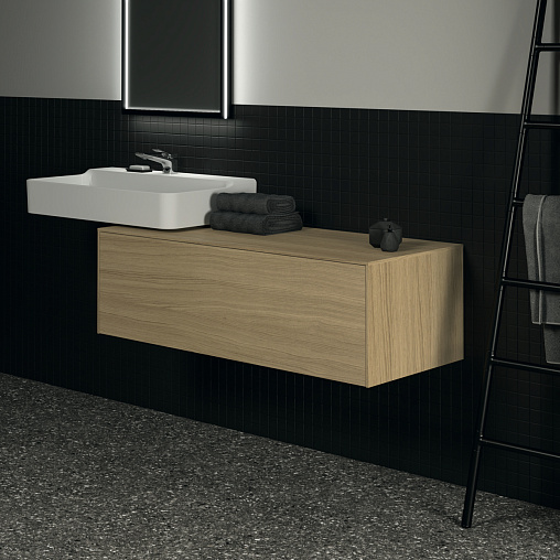 CONCA Тумба 120 см для раковины, без выреза в столешнице. Комбинированная система для удобного использования (открытие "Push to open" + закрытие "Soft close"). Внутренняя отделка ящиков цвета антрацит. 1 ящик. Для монтажа с раковинами Conca 40/50/60/80/100 см (с шлифованной нижней поверхностью) или Conca vessel 45/60 см или Extra 45/50/60/70/80/100 см (с шлифованной нижней поверхностью) или Extra vessel 50/60 см или Ipalyss vessel 40/55/60/65/80 см или Linda-X 50/60/75 см (с шлифованной нижней поверхностью) или Linda-X vessel 45/55 см