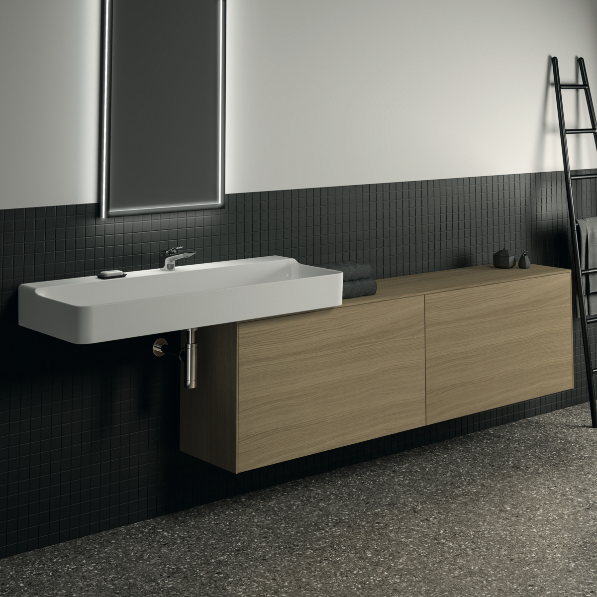 CONCA Тумба 200 см для раковины, узкая проекция 37 см, без выреза в столешнице. Комбинированная система для удобного использования (открытие "Push to open" + закрытие "Soft close"). Внутренняя отделка ящиков цвета антрацит. 2 внешних и 2 внутренних ящика. Для монтажа с раковинами Conca 40/50/60/80/100 см (с шлифованной нижней поверхностью) или Conca vessel 45/60 см или Extra 45/50/60/70/80/100 см (с шлифованной нижней поверхностью) или Extra vessel 50/60 см или Ipalyss vessel 40/55/60/65/80 см или Linda-X 50/60/75 см (с шлифованной нижней поверхностью) или Linda-X vessel 45/55 см