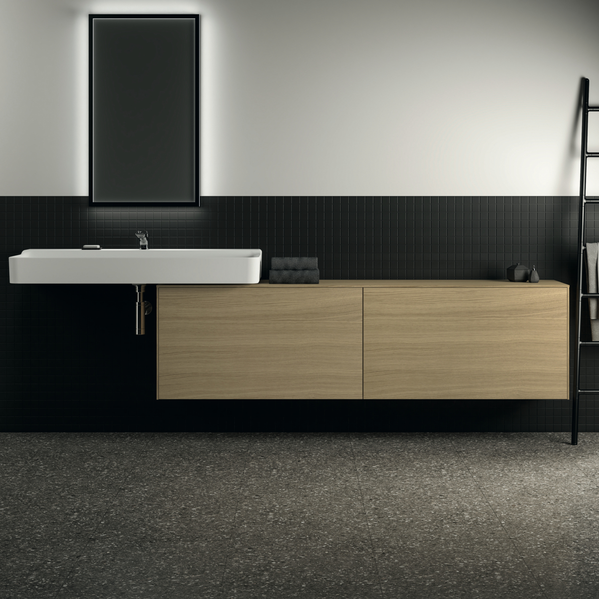 Тумба для ванной Conca светлый дуб, подвесной монтаж 198,7х37,3х55 см