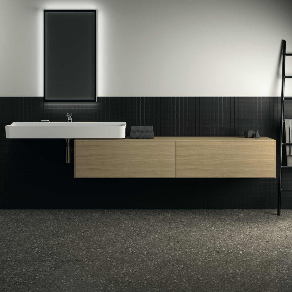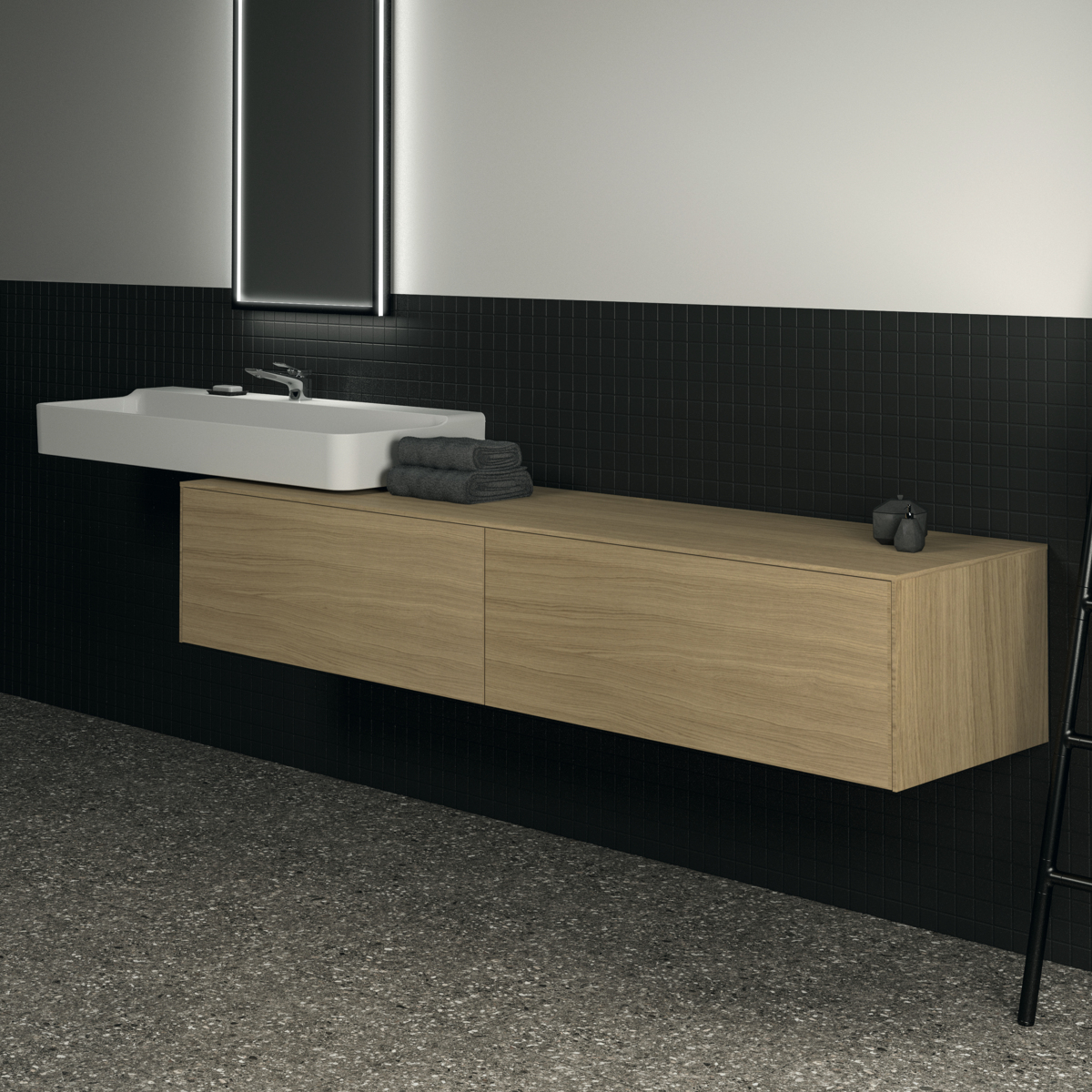 CONCA Тумба 200 см для раковины, без выреза в столешнице. Комбинированная система для удобного использования (открытие "Push to open" + закрытие "Soft close"). Внутренняя отделка ящиков цвета антрацит. 2 ящика. Для монтажа с раковинами Conca 40/50/60/80/100 см (с шлифованной нижней поверхностью) или Conca vessel 45/60 см или Extra 45/50/60/70/80/100 см (с шлифованной нижней поверхностью) или Extra vessel 50/60 см или Ipalyss vessel 40/55/60/65/80 см или Linda-X 50/60/75 см (с шлифованной нижней поверхностью) или Linda-X vessel 45/55 см