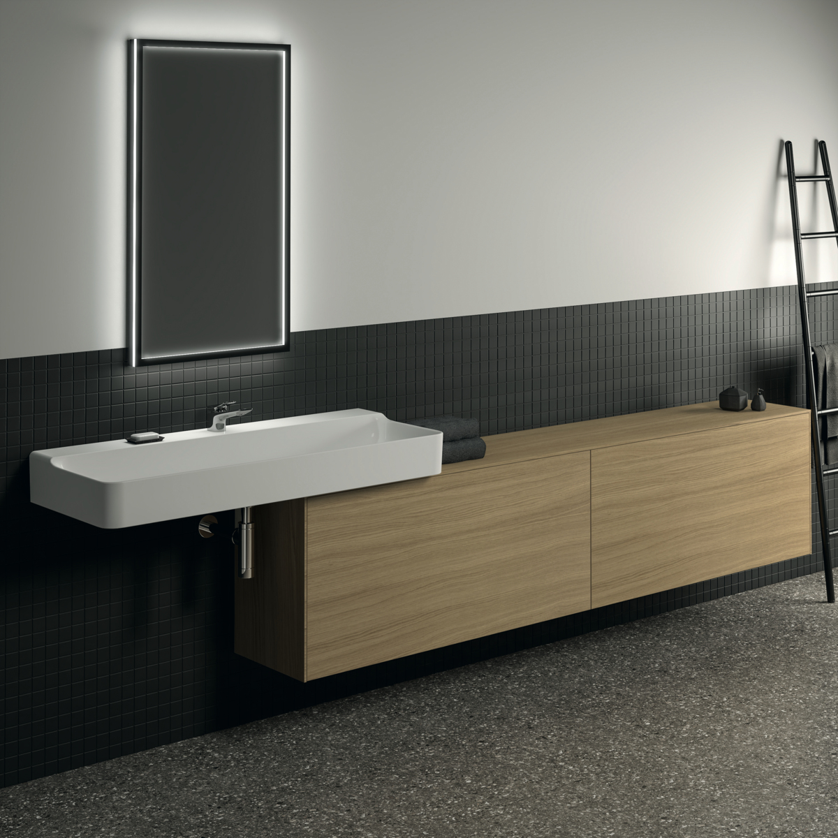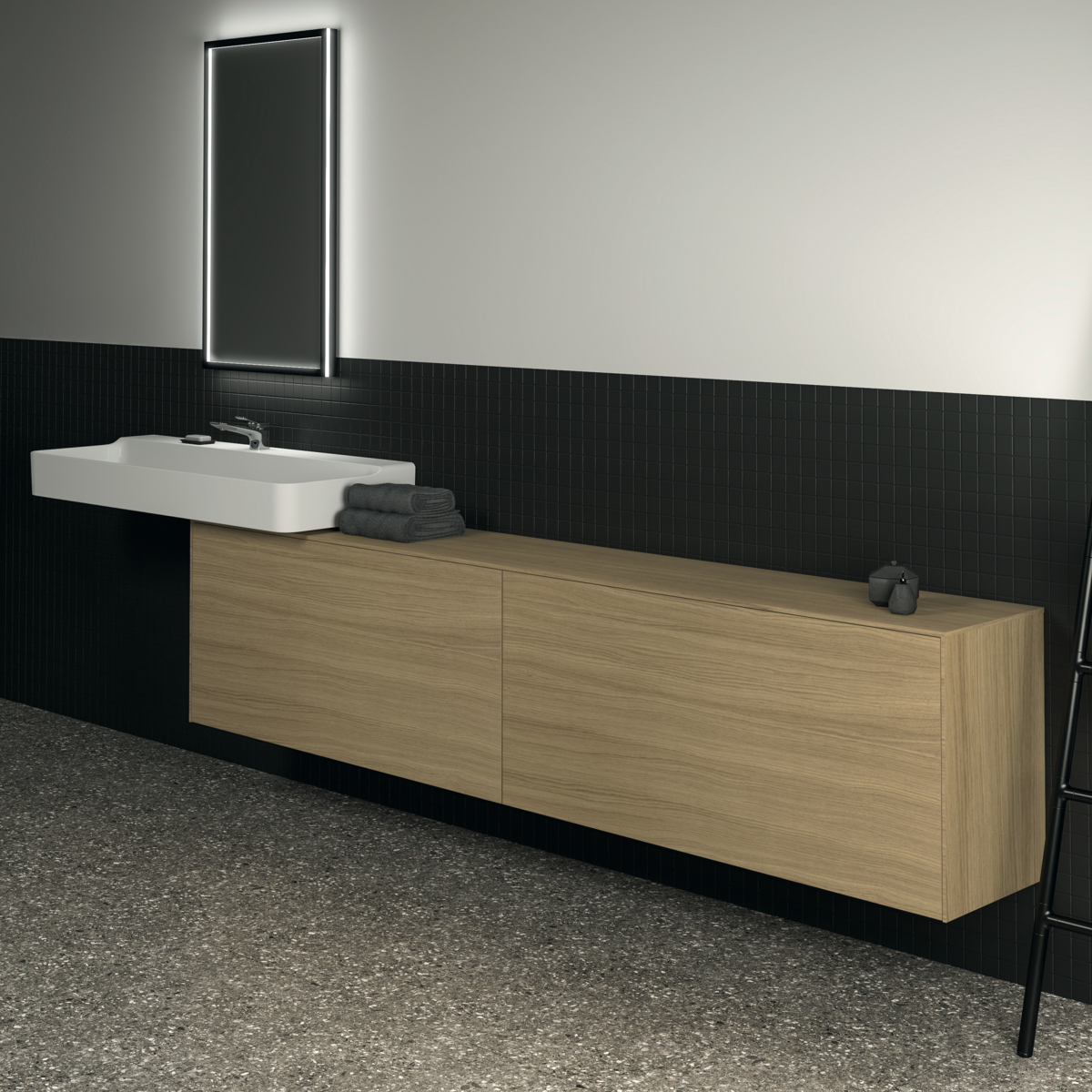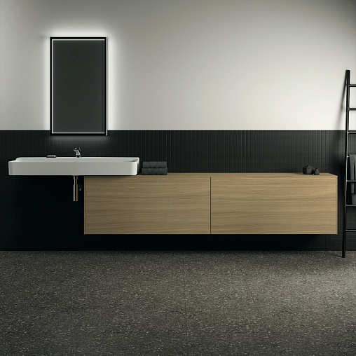 CONCA Тумба 240 см для раковины, узкая проекция 37 см, без выреза в столешнице. Комбинированная система для удобного использования (открытие "Push to open" + закрытие "Soft close"). Внутренняя отделка ящиков цвета антрацит. 2 внешних и 2 внутренних ящика. Для монтажа с раковинами Conca 40/50/60/80/100/120 см (с шлифованной нижней поверхностью) или Conca vessel 45/60 см или Extra 45/50/60/70/80/100 см (с шлифованной нижней поверхностью) или Extra vessel 50/60 см или Ipalyss vessel 40/55/60/65/80 см или Linda-X 50/60/75 см (с шлифованной нижней поверхностью) или Linda-X vessel 45/55 см