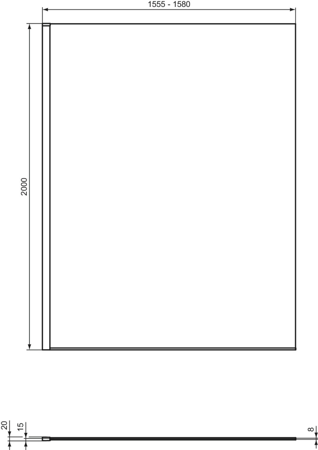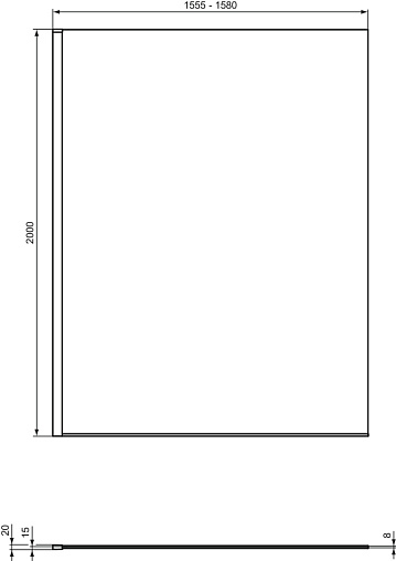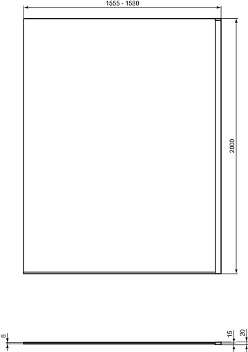 IS I.Life WetRoom Реверсивная фиксированная панель 160 см. Высота 200 см, безопасное прозрачное стекло 8 мм, антиизвестковое покрытие Ideal Clean, алюминиевый профиль Bright silver, регулировка профиля до 25 мм. С нижним алюминиевым профилем. Для монтажа с прямым, угловым или потолочным кронштейном Bright Silver (Блестящий серебристый)