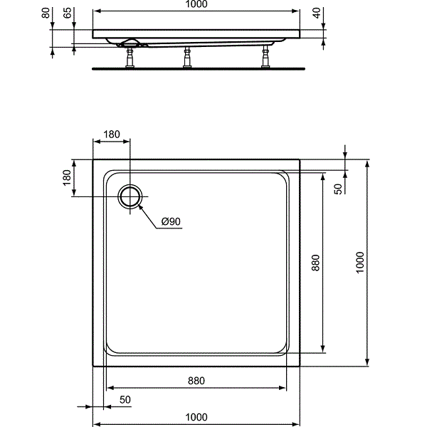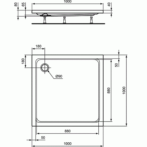 Акриловый квадратный душевой поддон
