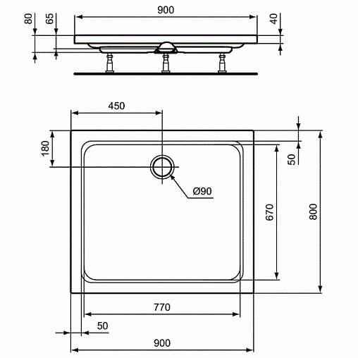 Hotline 80х90х7см, поддон, акриловый, прямоугольный, арт. K277301, Ideal Standard