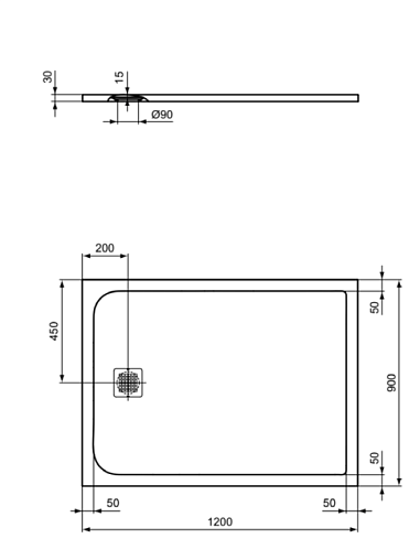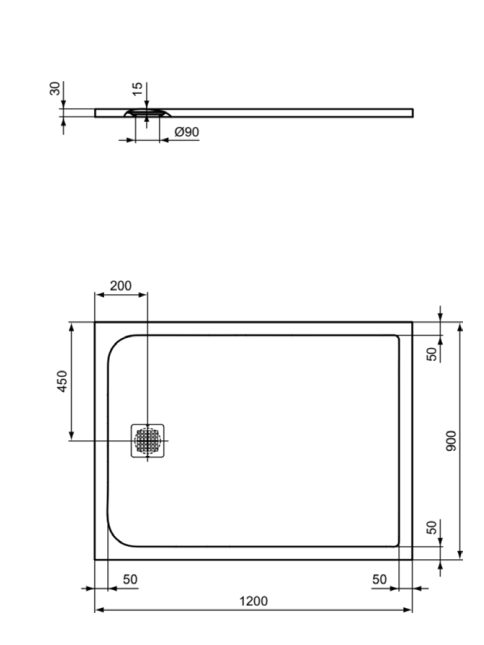 Ultra Flat S 120х90х3см, поддон, минеральный камень, прямоугольный, арт. K8230FV, Ideal Standard