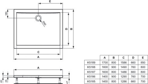 ULTRAFLAT Акриловый прямоугольный душевой поддон 160X90 см. Сифон, ножки и крепеж к стене заказываются дополнительно. Подходит для напольной и утопленной установки