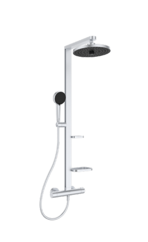 Душевая система без излива Alu + 2 режима ручной лейки, 26 см, round, термостат, верхний душ, с лейкой