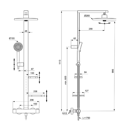 Alu +, душевая система без излива, 2 режима ручной лейки, 26 см, round, термостат, верхний душ, с лейкой, арт. BD583SI, Ideal Standard