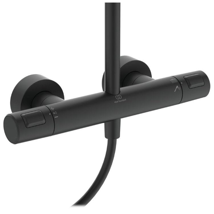 Душевая система без излива Ceratherm T25 матовый,термостат, 1 режим, 20 см, round, чёрный цвет, термостат, верхний душ, с лейкой