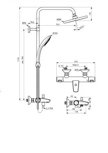 A7629AA CERATHERM T25 | Душевая система для ванны/душа 315x518.5x1116 mm, 158 mm проекция