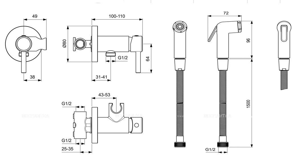 Встраиваемый гигиенический душ Idealspray лейка на смесителе, одноэлементный, металл