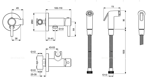 Idealspray, встраиваемый гигиенический душ, арт. BD130AA, Ideal Standard