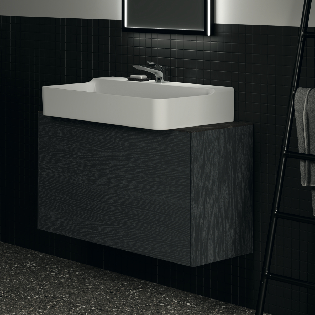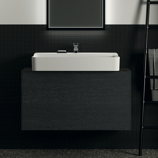 CONCA Тумба 100 см для раковины, узкая проекция 37 см, без столешницы. Комбинированная система для удобного использования (открытие "Push to open" + закрытие "Soft close"). Внутренняя отделка ящиков цвета антрацит. 1 внешний и 1 внутренний ящик. Для монтажа со столешницей из литьевого мрамора (без выреза / вырез под заказ) 100 см T4346.