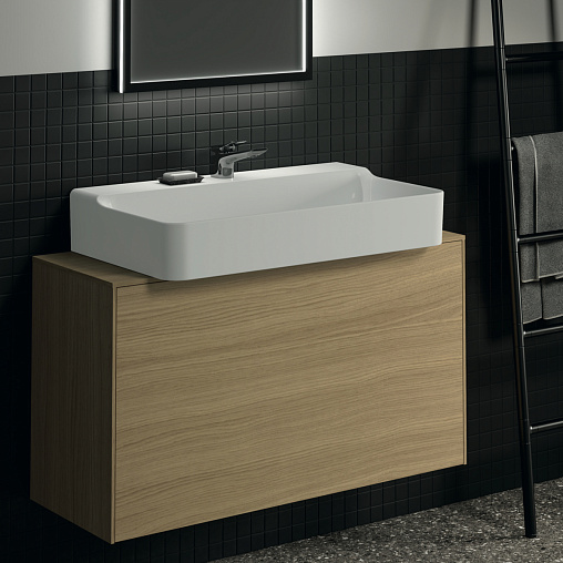 CONCA Тумба 100 см для раковины, узкая проекция 37 см, центральный вырез в столешнице. Комбинированная система для удобного использования (открытие "Push to open" + закрытие "Soft close"). Внутренняя отделка ящиков цвета антрацит. 1 внешний и 1 внутренний ящик.  Рекомендуется сифон Space Saving EE23033967 (заказывается дополнительно). Для монтажа с раковинами Conca 40/50/60/80 см (с шлифованной нижней поверхностью) или Conca vessel 45/60 см или Extra 45/50/60/70/80 см (с шлифованной нижней поверхностью) или Extra vessel 50/60 см или Ipalyss vessel 40/55/60/65/80 см или Linda-X 50/60/75 см (с шлифованной нижней поверхностью) или Linda-X vessel 45/55 см
