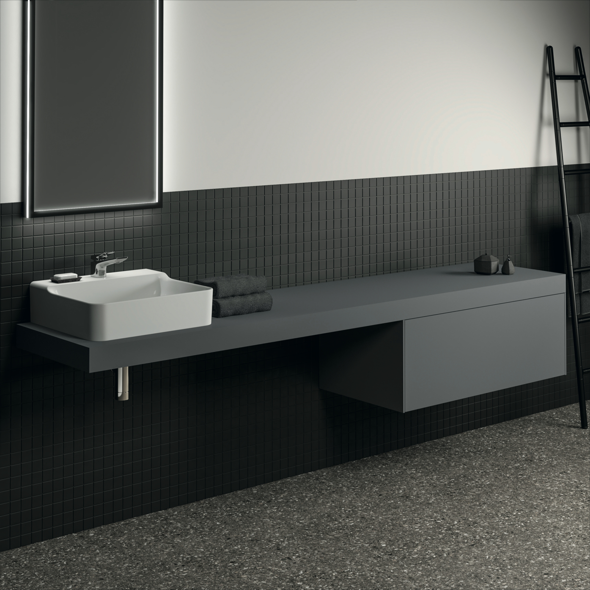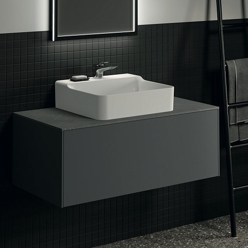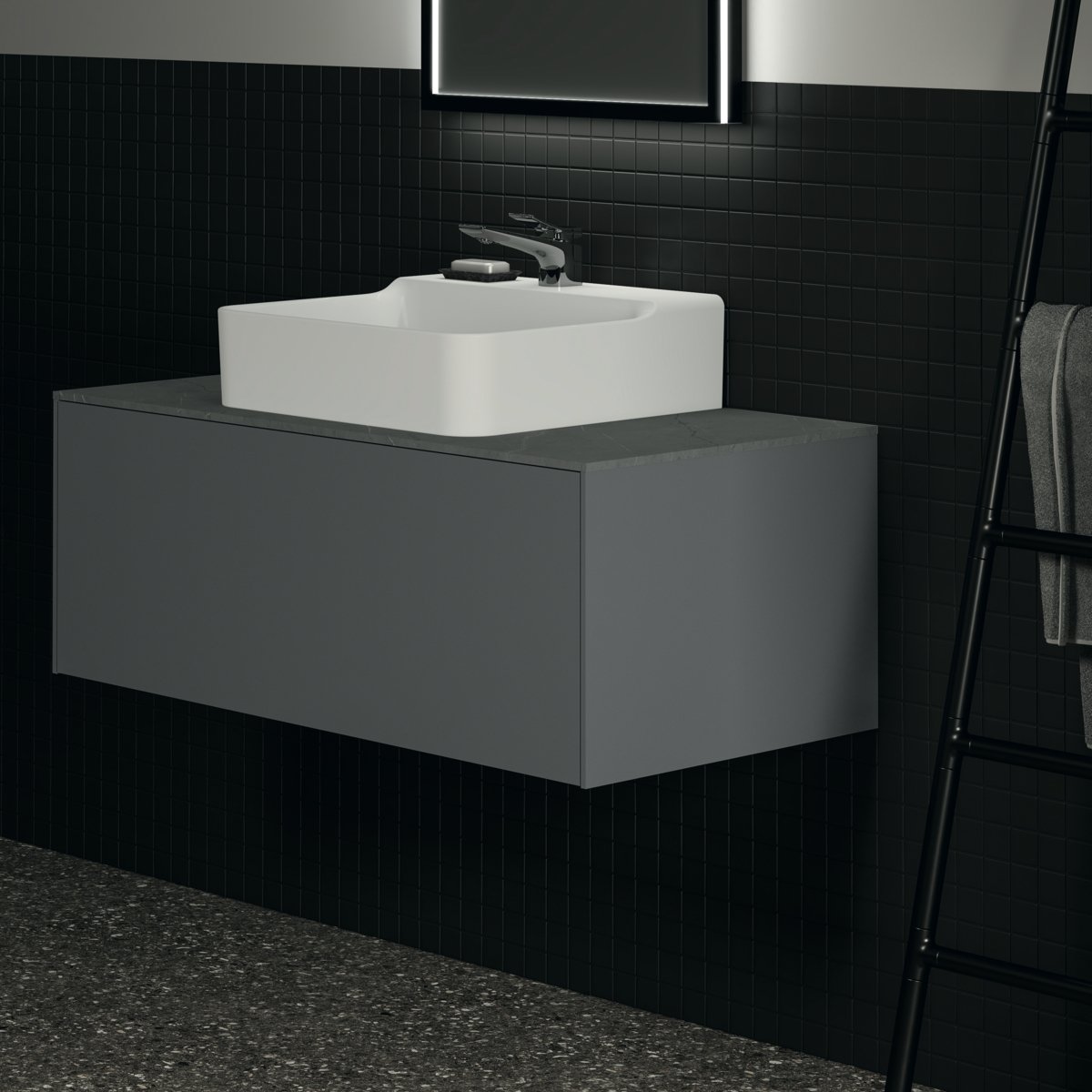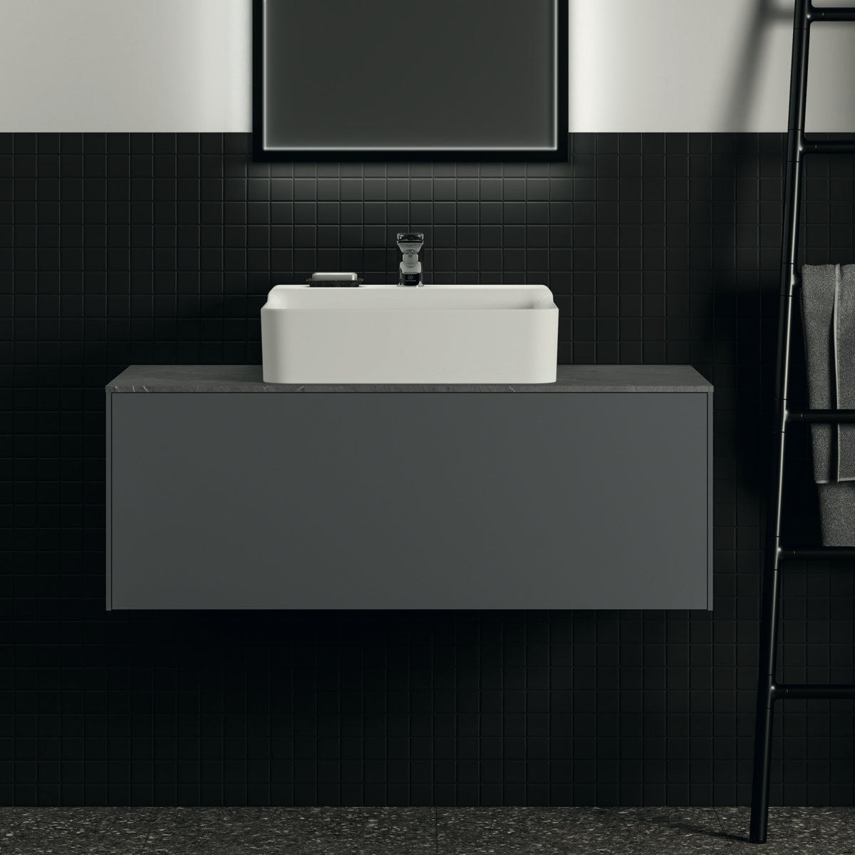 CONCA Тумба 100 см для раковины, без столешницы. Комбинированная система для удобного использования (открытие "Push to open" + закрытие "Soft close"). Внутренняя отделка ящиков цвета антрацит. 1 ящик. Для монтажа со столешницей из литьевого мрамора (без выреза / вырез под заказ) 100 см T3971.