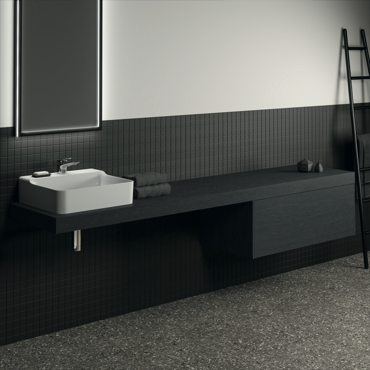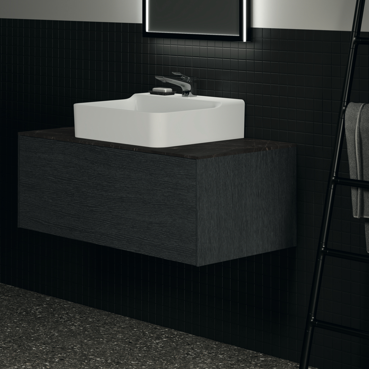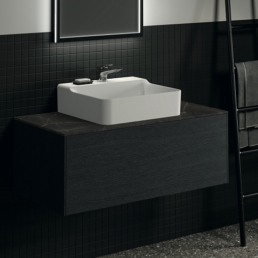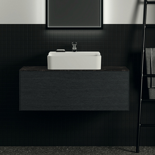 CONCA Тумба 100 см для раковины, без столешницы. Комбинированная система для удобного использования (открытие "Push to open" + закрытие "Soft close"). Внутренняя отделка ящиков цвета антрацит. 1 ящик. Для монтажа со столешницей из литьевого мрамора (без выреза / вырез под заказ) 100 см T3971.