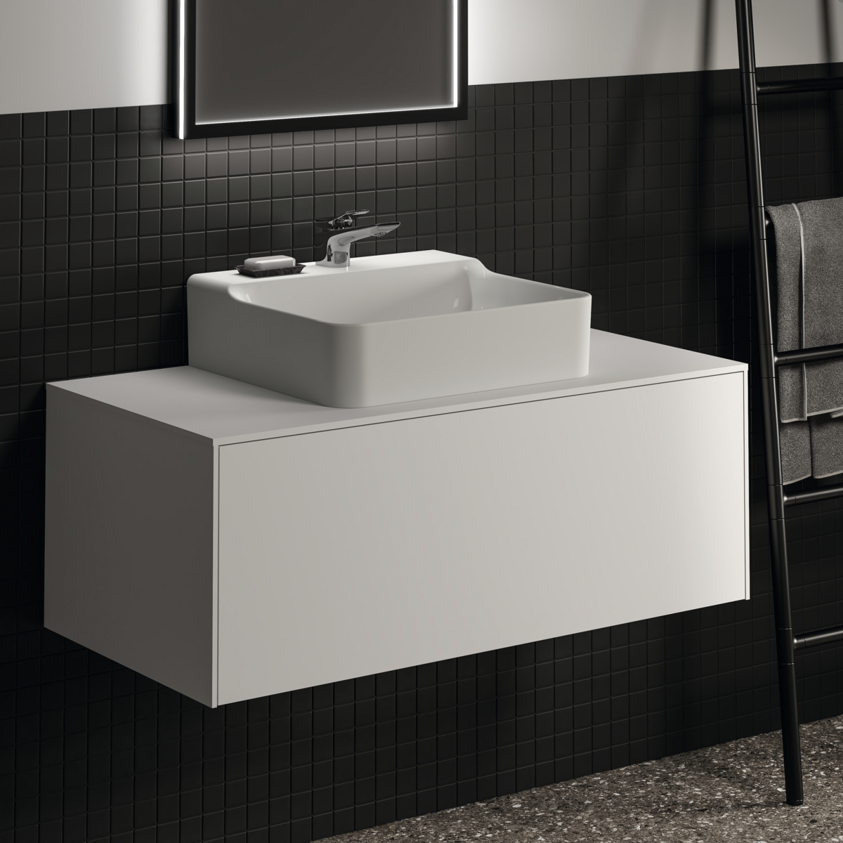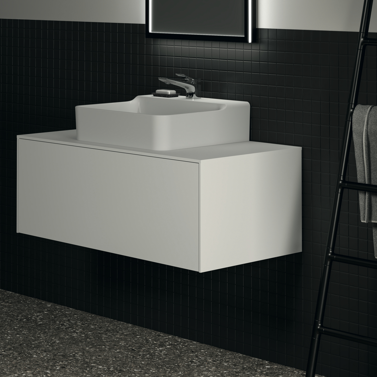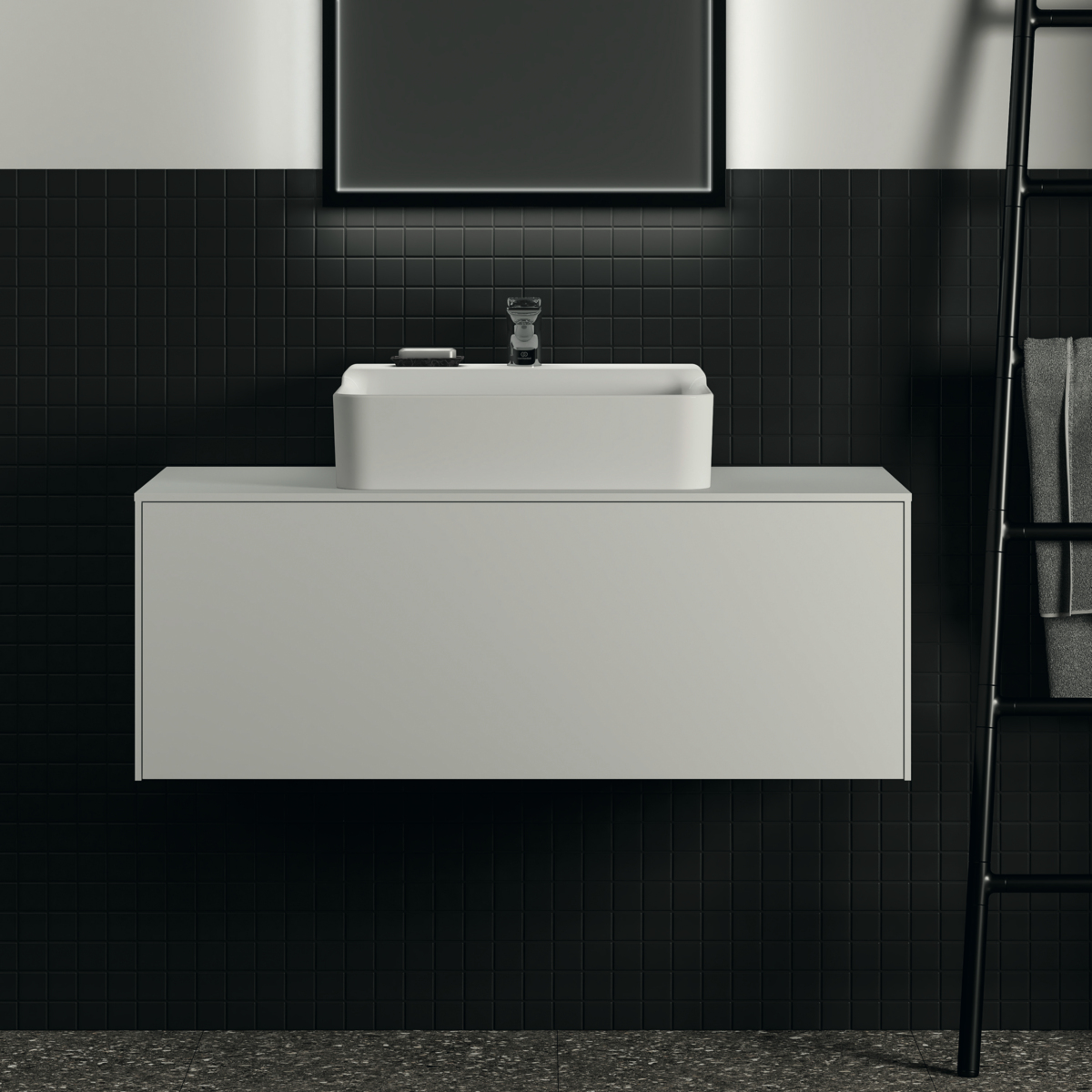 CONCA Тумба 100 см для раковины, центральный вырез в столешнице. Комбинированная система для удобного использования (открытие "Push to open" + закрытие "Soft close"). Внутренняя отделка ящиков цвета антрацит. 1 ящик. Рекомендуется сифон Space Saving EE23033967 (заказывается дополнительно). Для монтажа с раковинами Conca 40/50/60/80 см (с шлифованной нижней поверхностью) или Conca vessel 45/60 см или Extra 45/50/60/70/80 см (с шлифованной нижней поверхностью) или Extra vessel 50/60 см или Ipalyss vessel 40/55/60/65/80 см или Linda-X 50/60/75 см (с шлифованной нижней поверхностью)