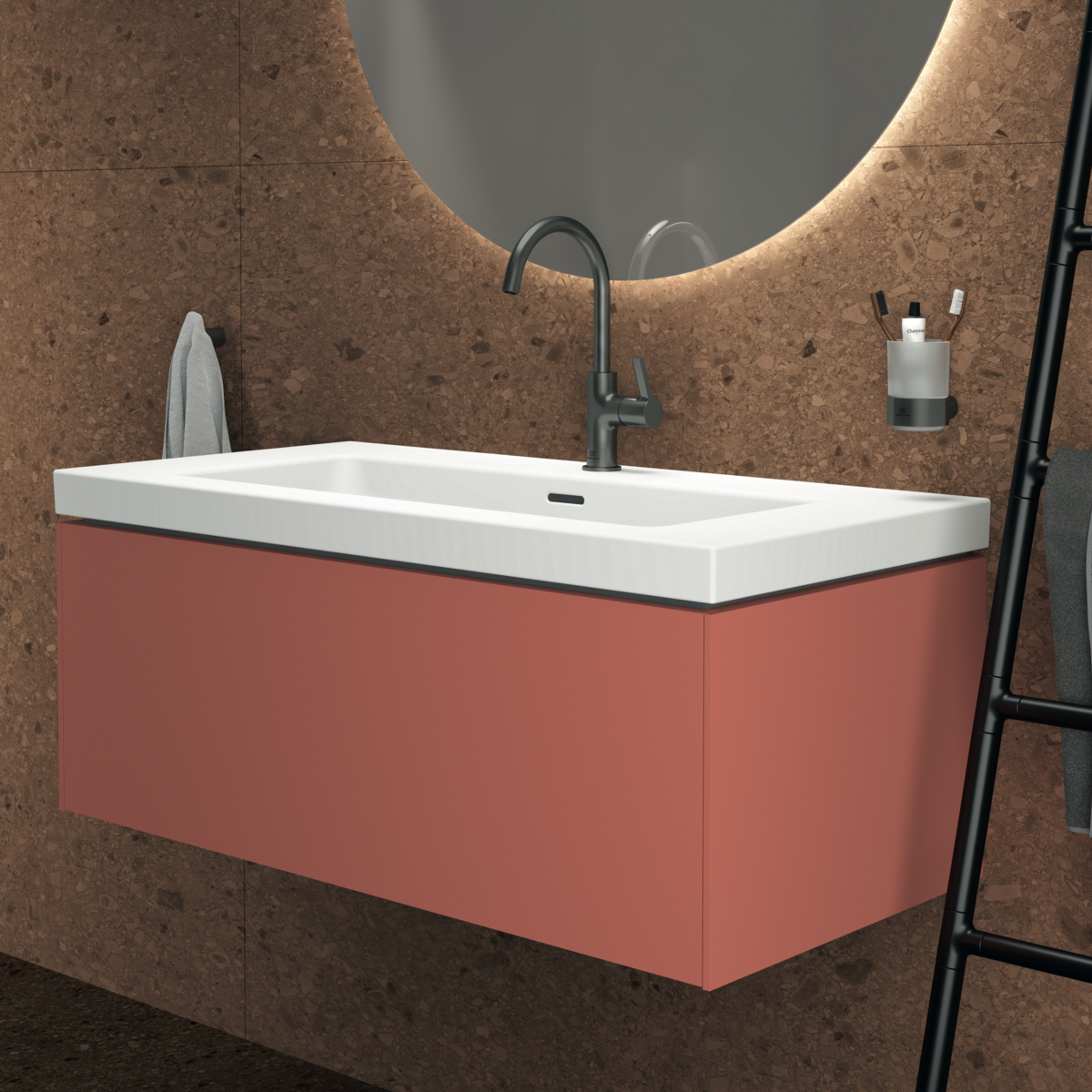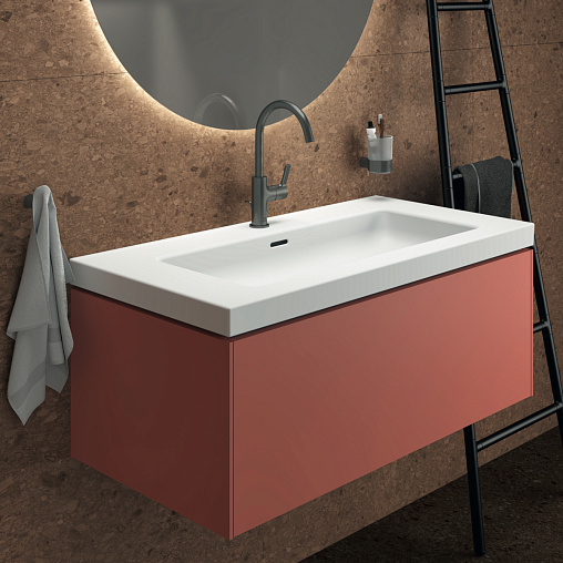 CONCA Тумба 100 см для раковины, без столешницы. Комбинированная система для удобного использования (открытие "Push to open" + закрытие "Soft close"). Внутренняя отделка ящиков цвета антрацит. 1 внешний ящик. Для монтажа с раковиной Extra Vanity 101 см или Solos Vanity 101,5 см или I.Life B Vanity 101 см