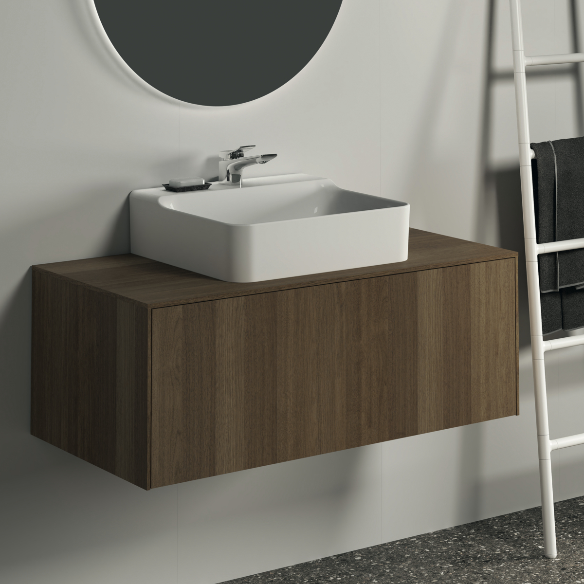 CONCA Тумба 100 см для раковины, центральный вырез в столешнице. Комбинированная система для удобного использования (открытие "Push to open" + закрытие "Soft close"). Внутренняя отделка ящиков цвета антрацит. 1 ящик. Рекомендуется сифон Space Saving EE23033967 (заказывается дополнительно). Для монтажа с раковинами Conca 40/50/60/80 см (с шлифованной нижней поверхностью) или Conca vessel 45/60 см или Extra 45/50/60/70/80 см (с шлифованной нижней поверхностью) или Extra vessel 50/60 см или Ipalyss vessel 40/55/60/65/80 см или Linda-X 50/60/75 см (с шлифованной нижней поверхностью)
