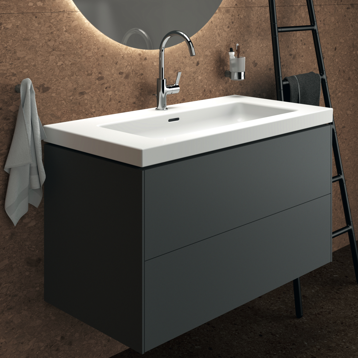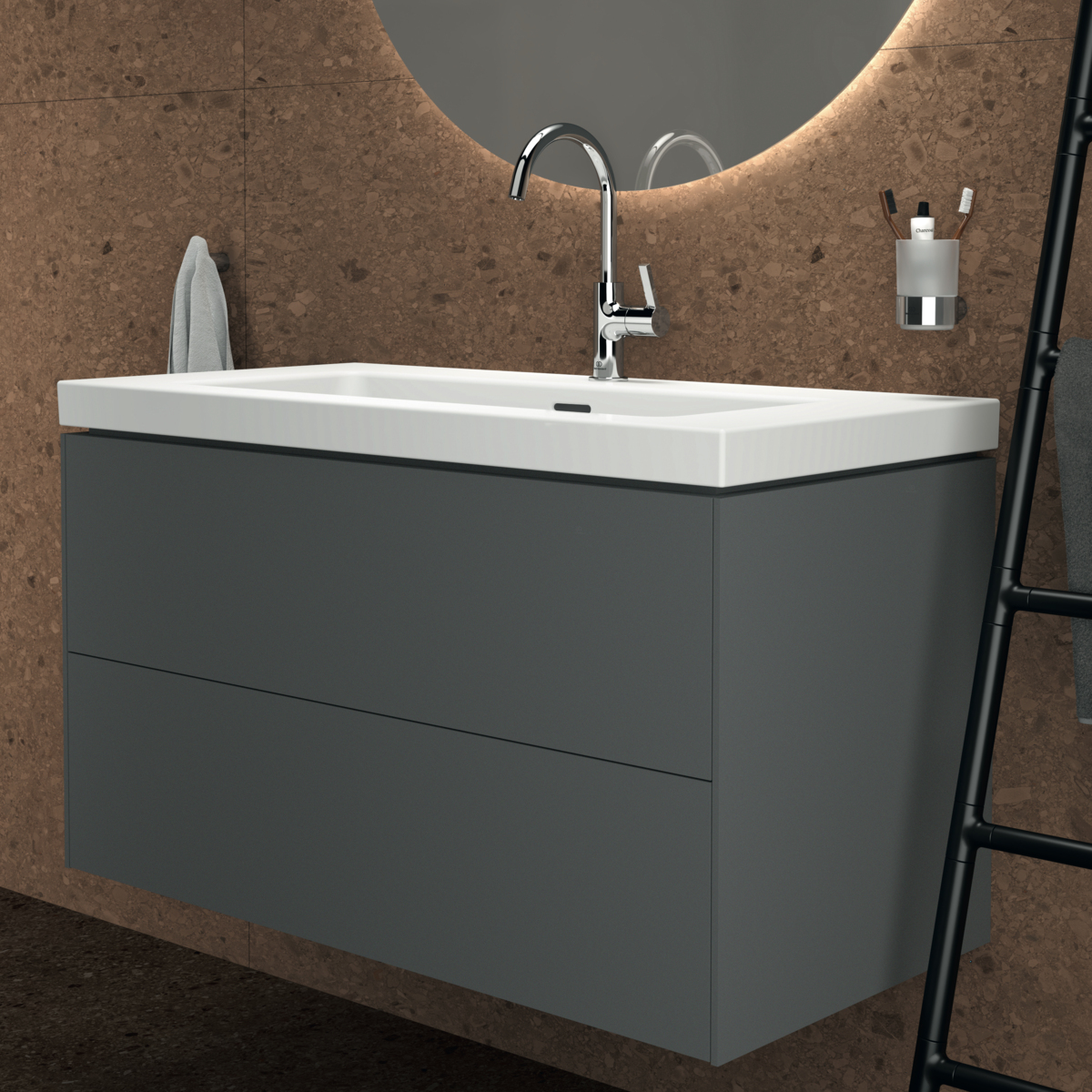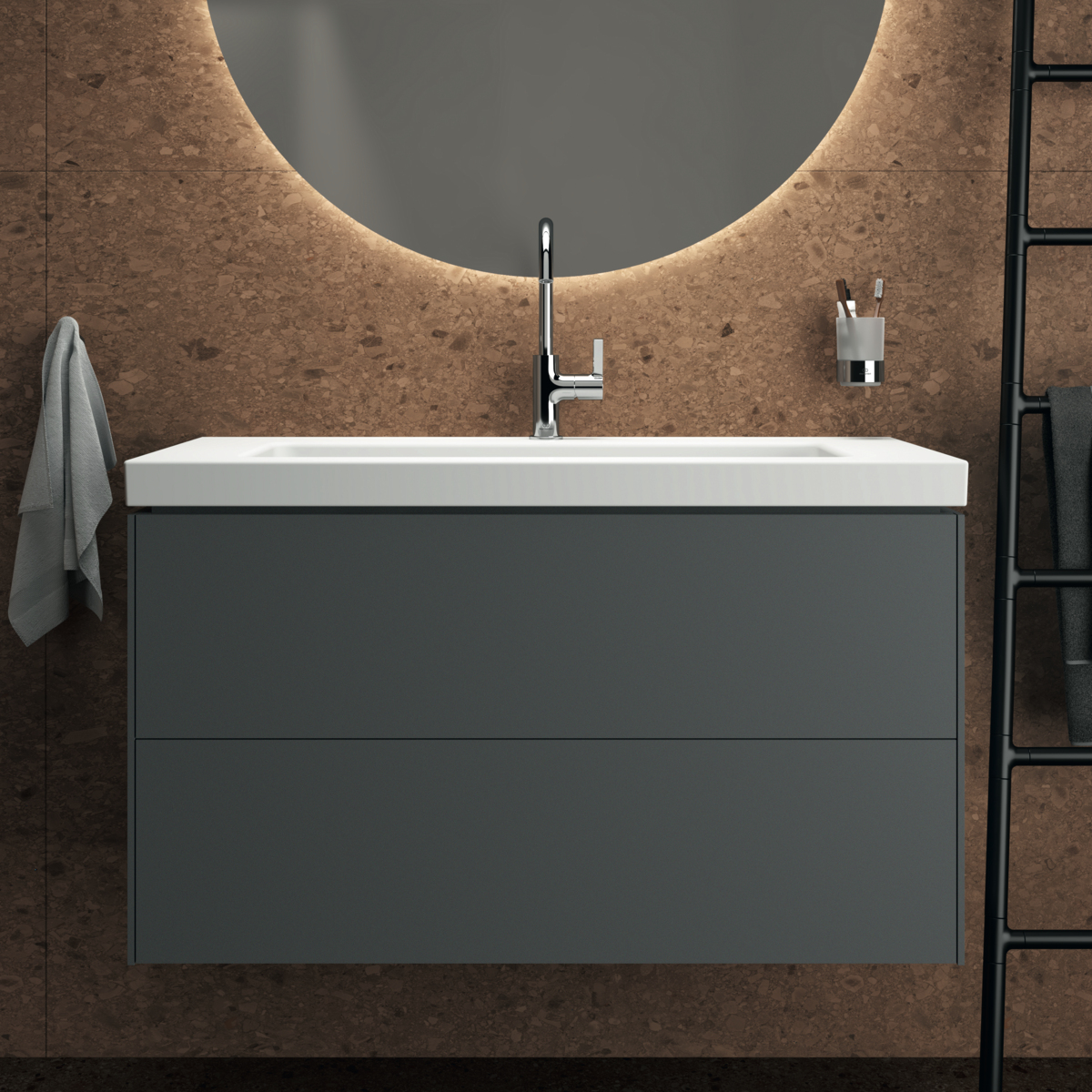 CONCA Тумба 100 см для раковины, без столешницы. Комбинированная система для удобного использования (открытие "Push to open" + закрытие "Soft close"). Внутренняя отделка ящиков цвета антрацит. 2 внешних ящика. Для монтажа с раковиной Extra Vanity 101 см или Solos Vanity 101,5 см или I.Life B Vanity 101 см