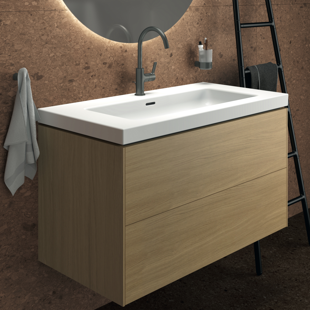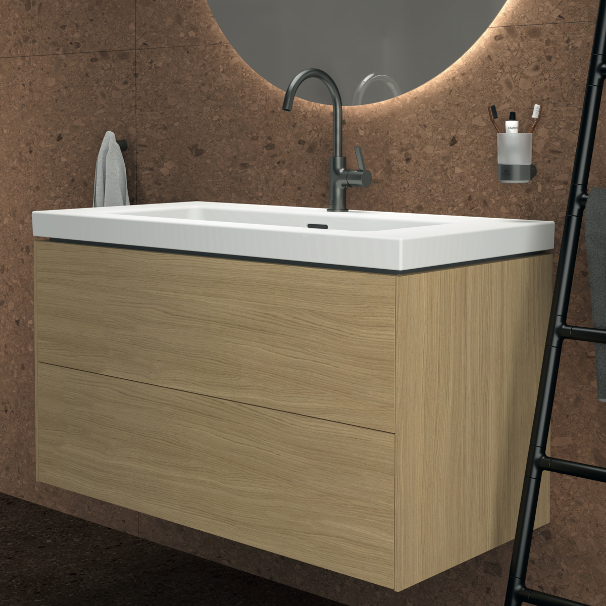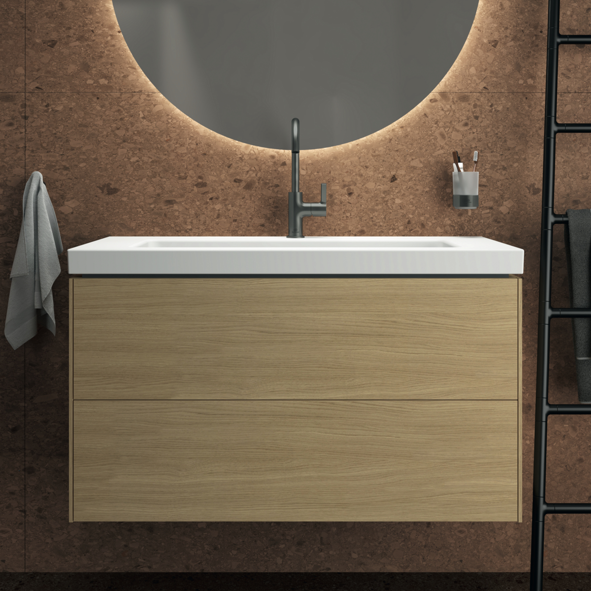 CONCA Тумба 100 см для раковины, без столешницы. Комбинированная система для удобного использования (открытие "Push to open" + закрытие "Soft close"). Внутренняя отделка ящиков цвета антрацит. 2 внешних ящика. Для монтажа с раковиной Extra Vanity 101 см или Solos Vanity 101,5 см или I.Life B Vanity 101 см