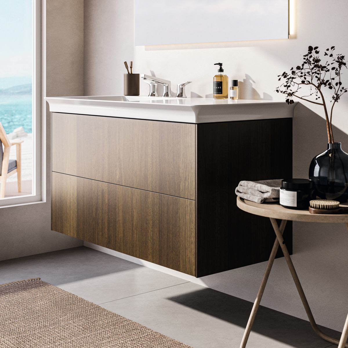 CONCA Асимметричная тумба без столешницы 100х50 см, левая версия, комбинированная система для удобного использования (открытие "Push to open" + закрытие "Soft close"). Внутренняя отделка ящиков цвета антрацит. 2 ящика. Для монтажа с раковинами La Dolce Vita Asymmetrical Left 106 см E2646, E2703, E2678